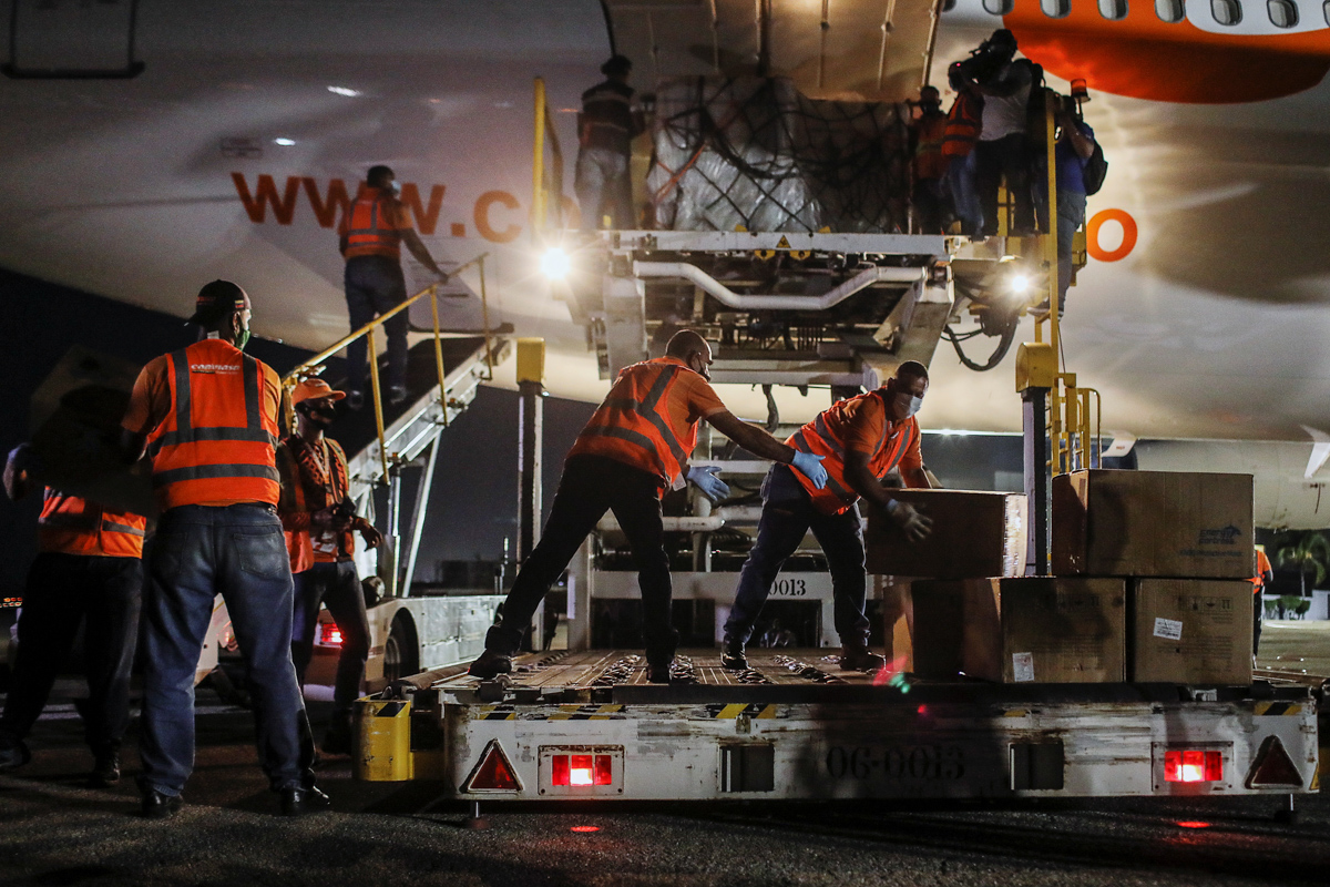 Desembarco de las vacunas chinas en Venezuela. Foto Manaure Quintero / Reuters
