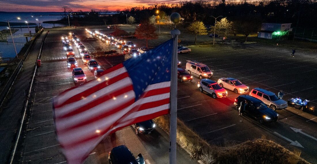 En un centro de pruebas federal recién inaugurado en el Parque Travers de Nueva York, la gente formaba largas colas en medio del frío invernal.