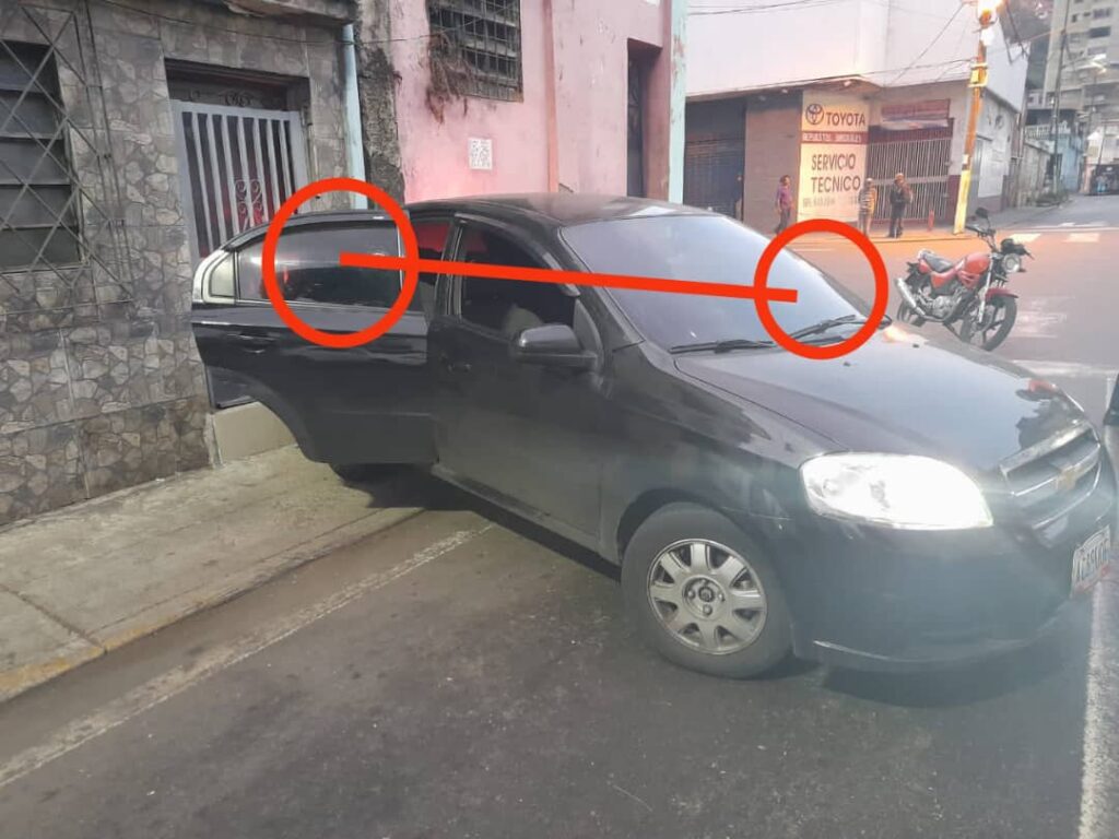 Fuentes y fotografías revelaron que el proyectil entró por el lado izquierdo del parabrisas del vehículo de Nicolás Fermín, un Chevrolet, modelo Aveo, de color negro. El joven resultó herido en el cuello y la bala salió y dejó un orificio en el lado derecho trasero.
