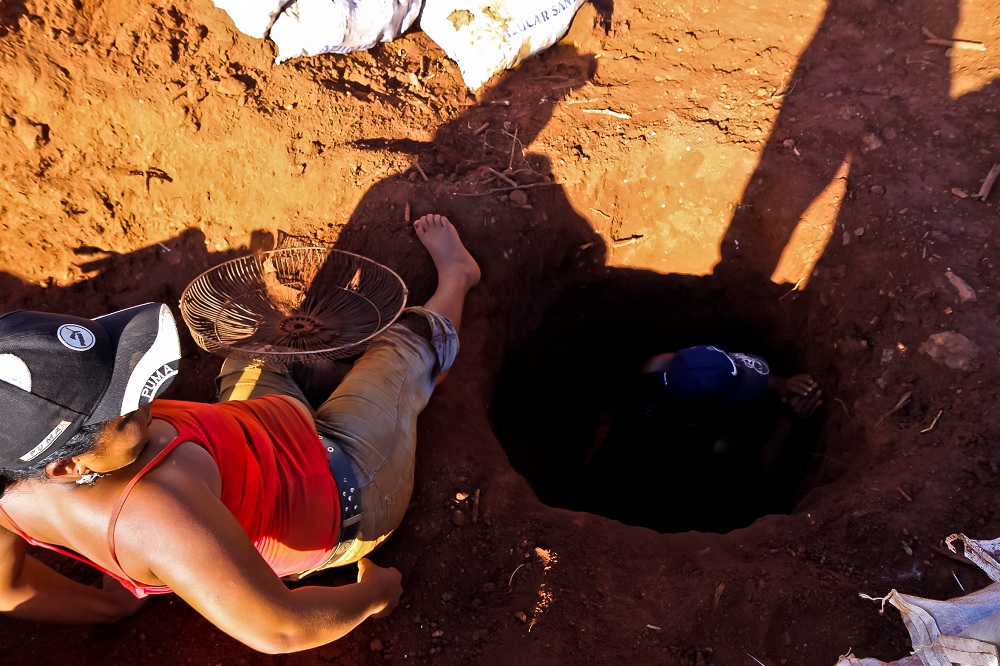 El 35% de lo extraído corresponde al Estado, y el 65% debería repartirse entre las asociaciones de pequeños mineros que trabajan en condiciones precarias por falta de equipos, indumentaria de seguridad y sin garantías de acceso a agua, saneamiento, higiene y atención médica.