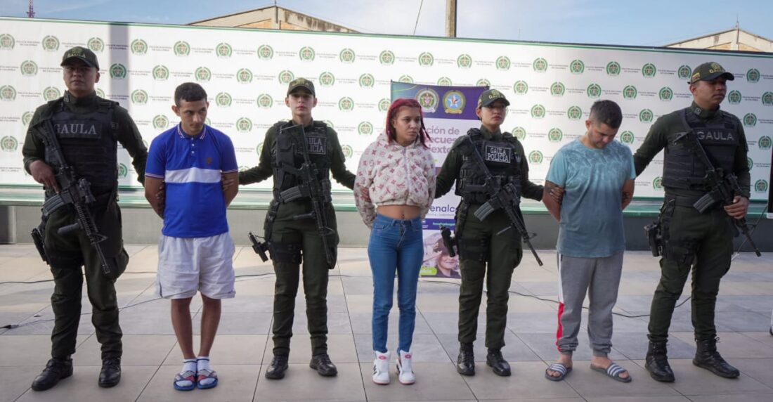 ¡Caen porque caen!#Capturados 5 criminales del ‘Tren de Aragua’. Entre ellos ‘Bellaco’, quien sería el responsable del lanzamiento de una granada, hace un mes, en Kennedy y ‘Francesca’, cabecilla de la zona y encargada de extorsionar a trabajadoras sexuales del sector de la 38. pic.twitter.com/q7kuN3H0xN