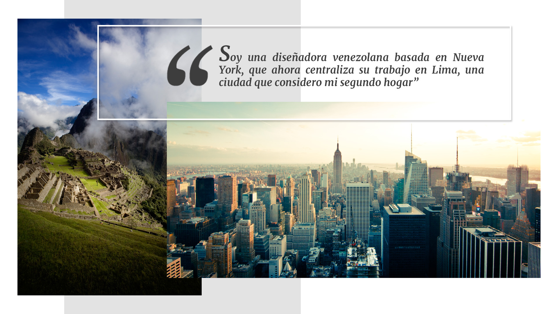 Mi ADN creativo esta definitivamente marcado por la influencia latinoamericana, estoy obsesionada con lo hecho a mano en nuestros países, eso sí, con calidad, con esmero, con altas dosis de ingenio y creatividad. Mi marca tiene que ver con mis raíces, con mi manera venezolana y latina de vivir y relacionarme con las cosas. Mi esencia es arquitectónica, son piezas de líneas puras, pulidas, esculturales y muy sofisticadas.”