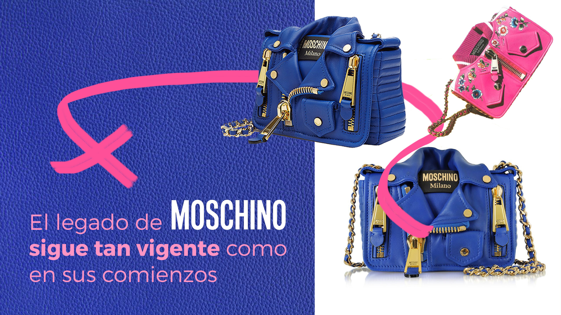 Extravagante, mediática, rebelde y, hoy en día, exitosa como pocas, Moschino sigue fiel a su esencia, irónica y divertida. Desde prendas inspiradas en los uniformes de los trabajadores de un autolavado, pasando por ropa chamuscada, vestidos de muñecas recortables hasta forros de iPhone en forma del paquete de papas fritas de McDonalds, osos de peluche y productos limpiadores, nunca la moda había sido una expresión tan fiel de la cultura pop.