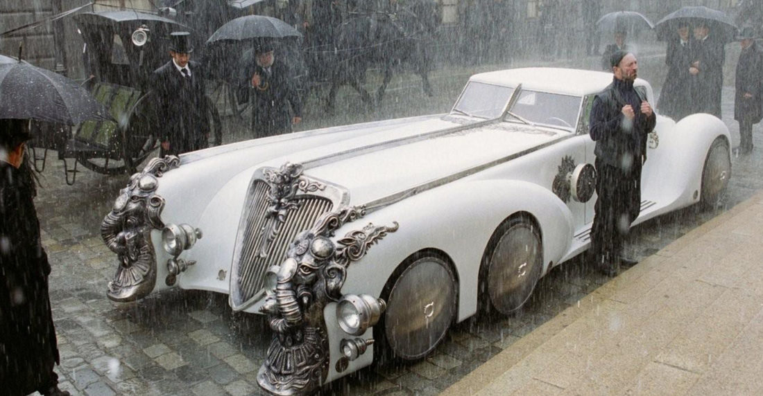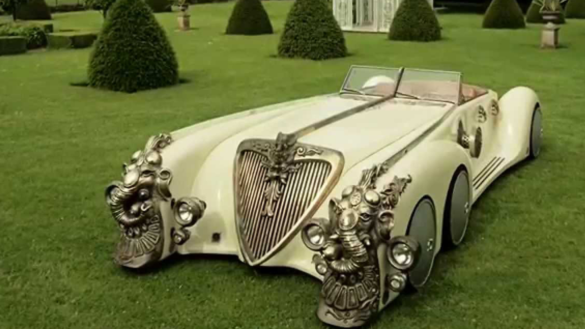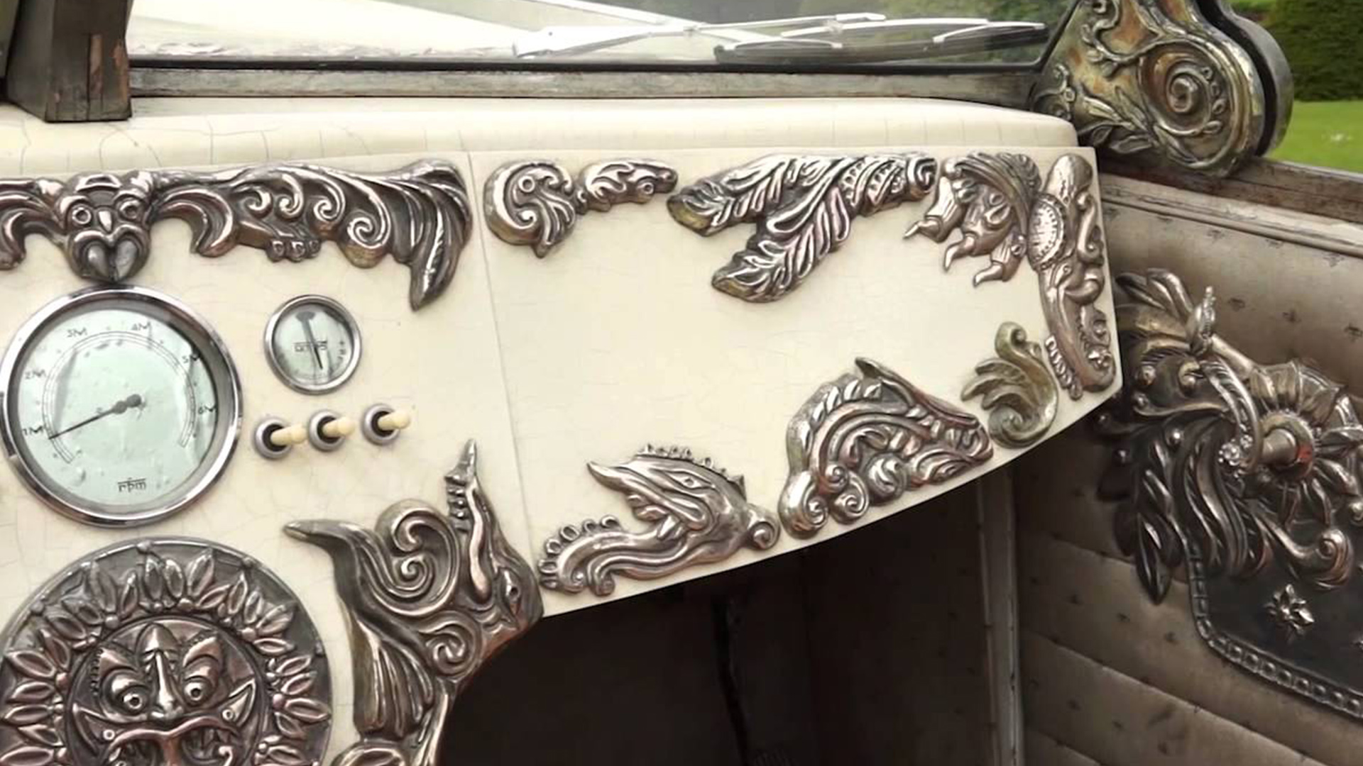 Extravagante al extremo, el descapotable propiedad del enigmático capitán Nemo cuenta con seis ruedas y un frontal más que abigarrado que destaca por ubicar a cada lado de la triangular parrilla dos inmensos apliques de la divinidad hindú Ganesha, cuyo cuerpo alberga seis de los ocho faros dispuestos a cada lado y unos 12 kilos de material ornamental.