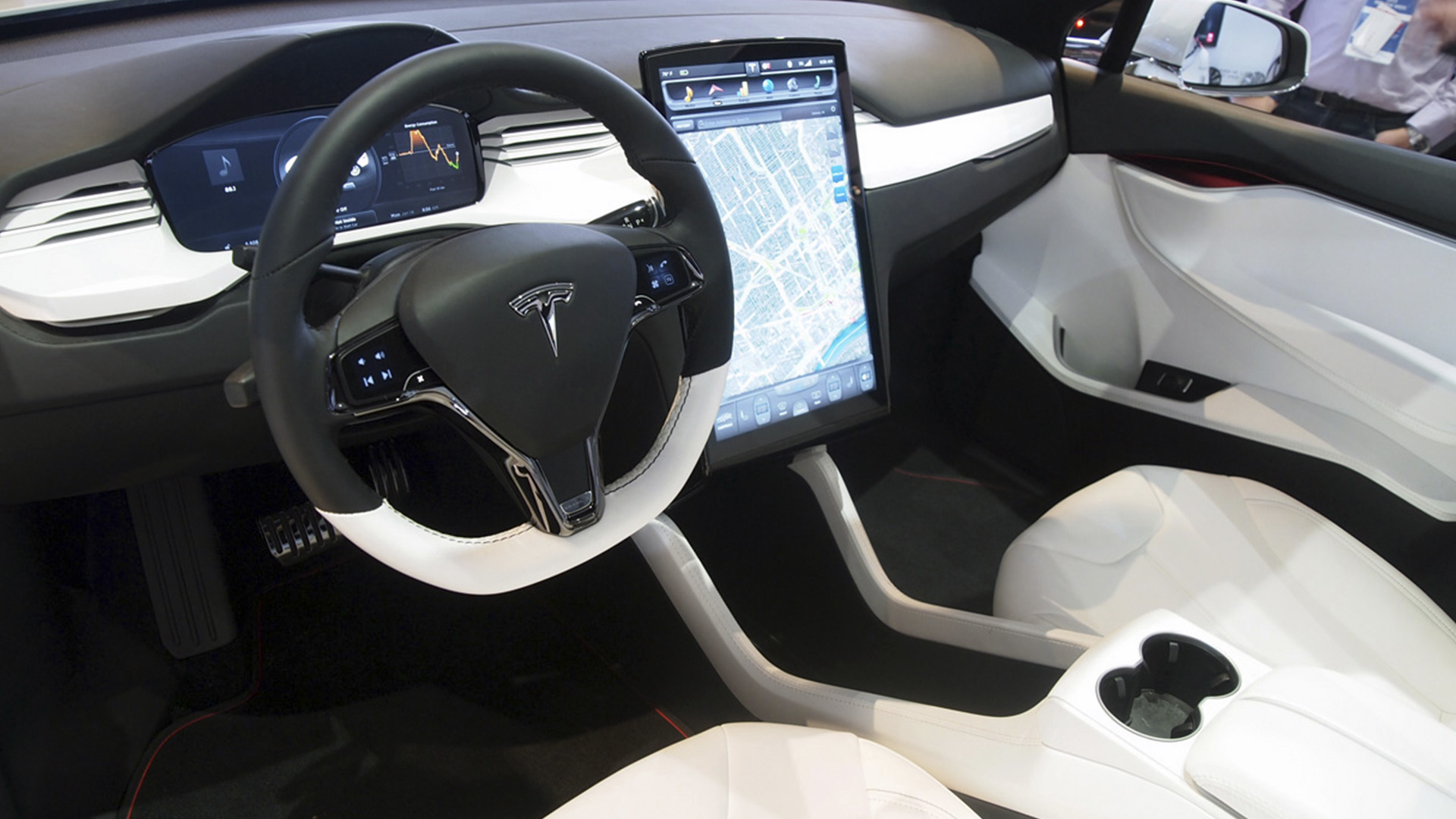 El tablero, con un diseño menos cuadrado, incorpora un panel de instrumentos digital a color y una pantalla táctil de 17 pulgadas desde la cual se manejan la mayoría de las funciones vitales: GPS, equipo de sonido, interruptores, climatización, acceso a internet, telefonía digital o satelital, etc.