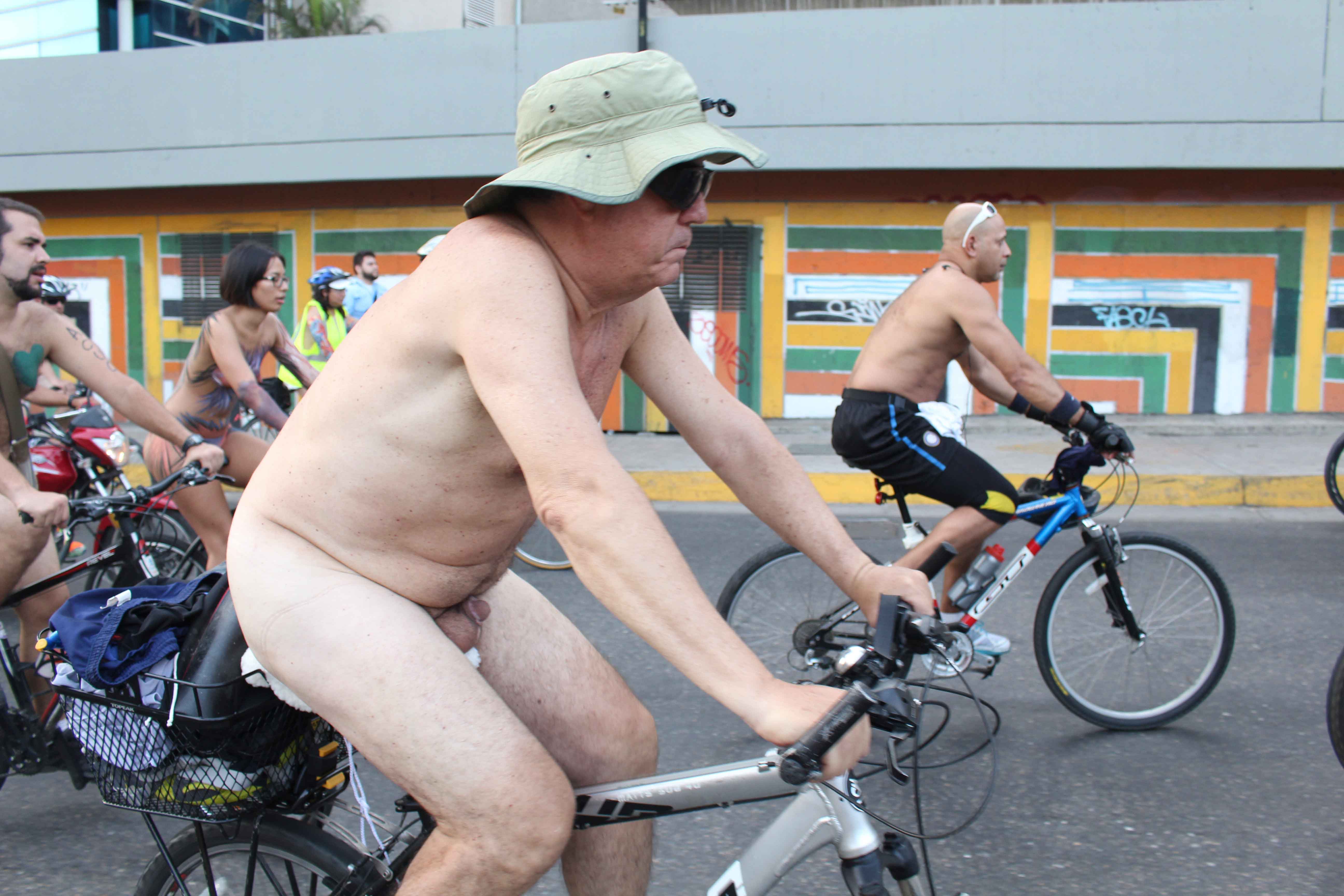 Este servidor fue parte de la movida. Como ciclista urbano, cuyo único medio de transporte propio es una «montañera», lo que me pudo preocupar al rodar «en bolas» sobre mi bicicleta, fue el roce del sillín con el culo y de los testículos contra el cuadro. Sin embargo, confieso no haber llegado a desprenderme del todo, pues andaba con unos «boxers» cuadriculados bien caseros y mi carnet de prensa en el pecho.