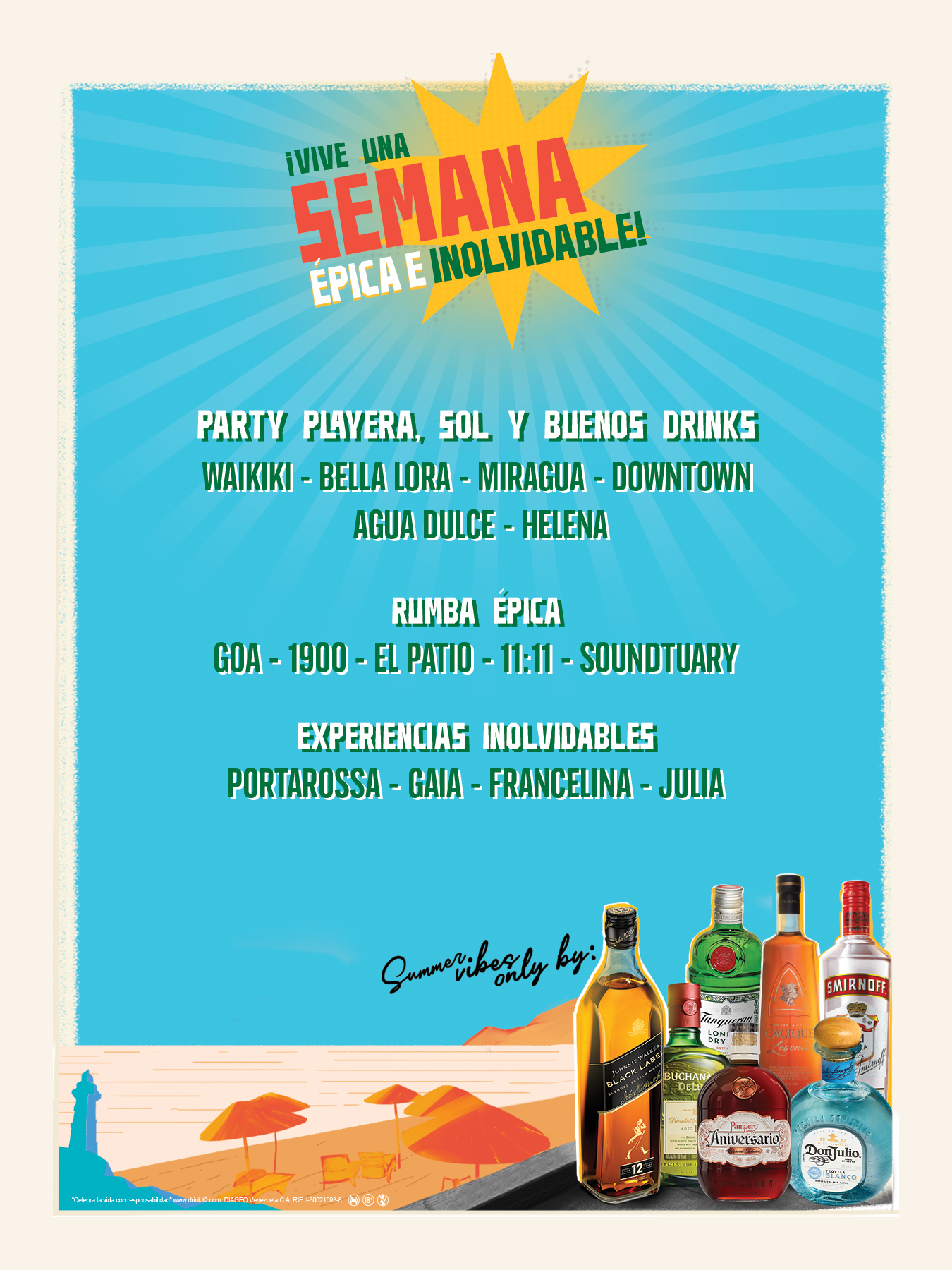 Marcas icónicas como Buchanan’s y Johnnie Walker; los galardonados rones venezolanos Pampero y Cacique Leyenda; el magnífico gin Tanqueray; y el tequila más amado de México, Don Julio, se suman a este verano inolvidable en Margarita en las principales playas, clubes y restaurantes de la isla.