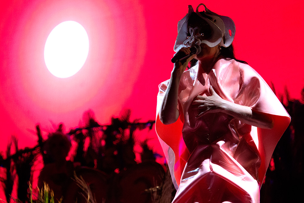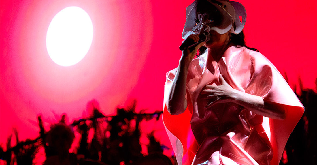 En ese atardecer el tiempo se detuvo. Era inminente la aparición de una leyenda viva, una deidad: Björk, esa artista de proporciones mayúsculas que comenzó el espectáculo de Utopia con un manifiesto en el que nos invitaba a imaginarnos la luz y a estar dentro de ella (“Imagine the light/ Be in It”).