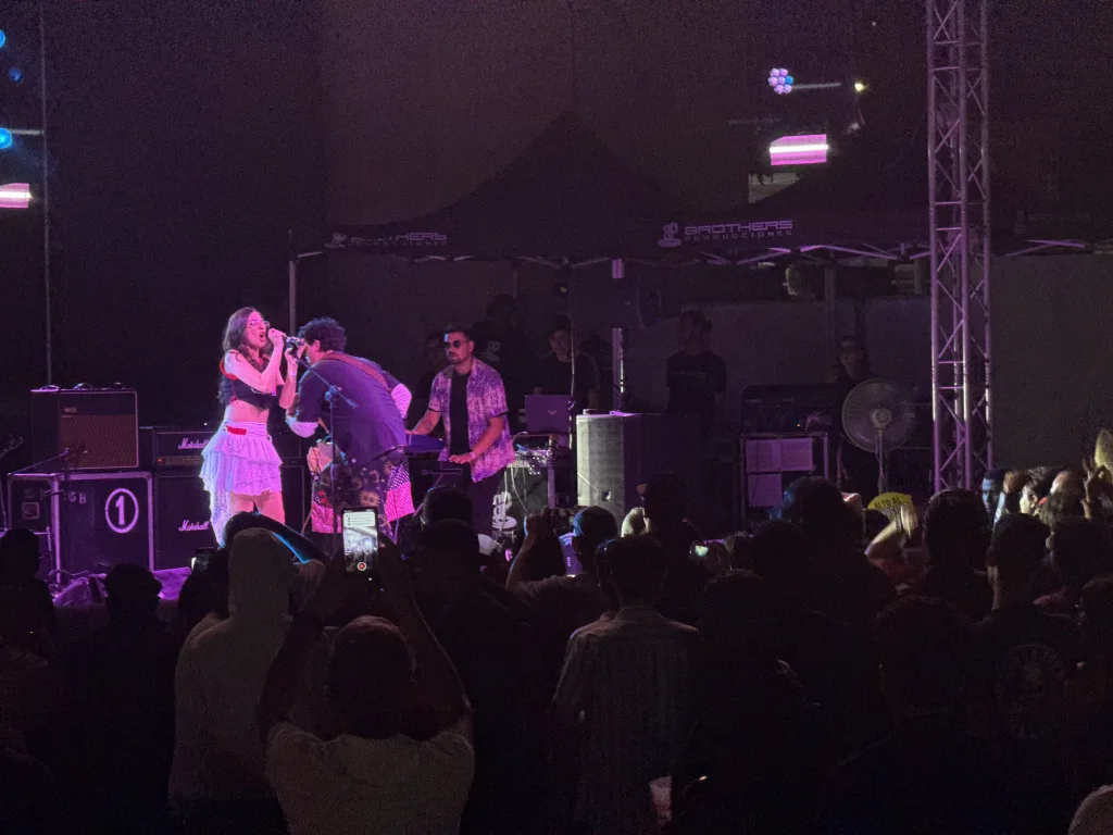 Su presentación fue una descarga de energía y sensualidad. Nani bajó del escenario para cantar su más reciente sencillo, Pa’ las pilas, y puso a bailar cumbia incluso a los más rockeros.
