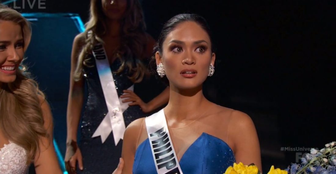 Miss Colombia, Ariadna Gutiérrez Arévalo, fue coronada brevemente Miss Universo en el certamen en Las Vegas el mes pasado, antes de que Harvey regresara al centro del escenario para pedir disculpas y anunciar que había leído mal la tarjeta, pues miss Filipinas era la verdadera ganadora y Colombia la primera finalista.