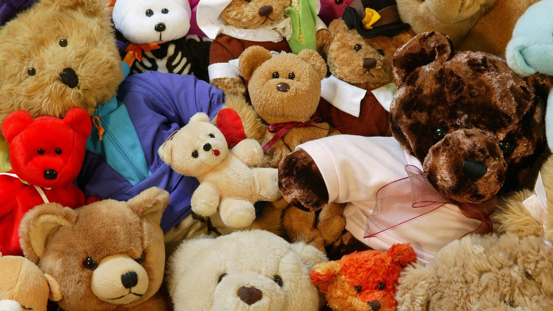 De peluche, pequeños, grandes, de felpa, llaveros, franelas con caras de ositos, zapatos en forma de osito, correas de ositos, anteojos de ositos y también cualquier artículo hecho de peluche. Carteras de peluche, chaquetas de peluche, volantes de peluche, ropa de peluche, ceniceros de peluche y pare usted de contar. El peluche es lo contrario de lo que la kriptonita a Superman.