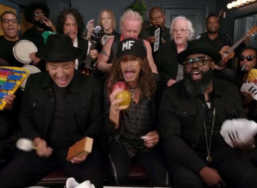 La banda estadounidense Aerosmith visitó el programa de televisión The Tonight Show Starring Jimmy Fallon donde interpretaron un cover de uno de sus más grandes hits con instrumentos para niños