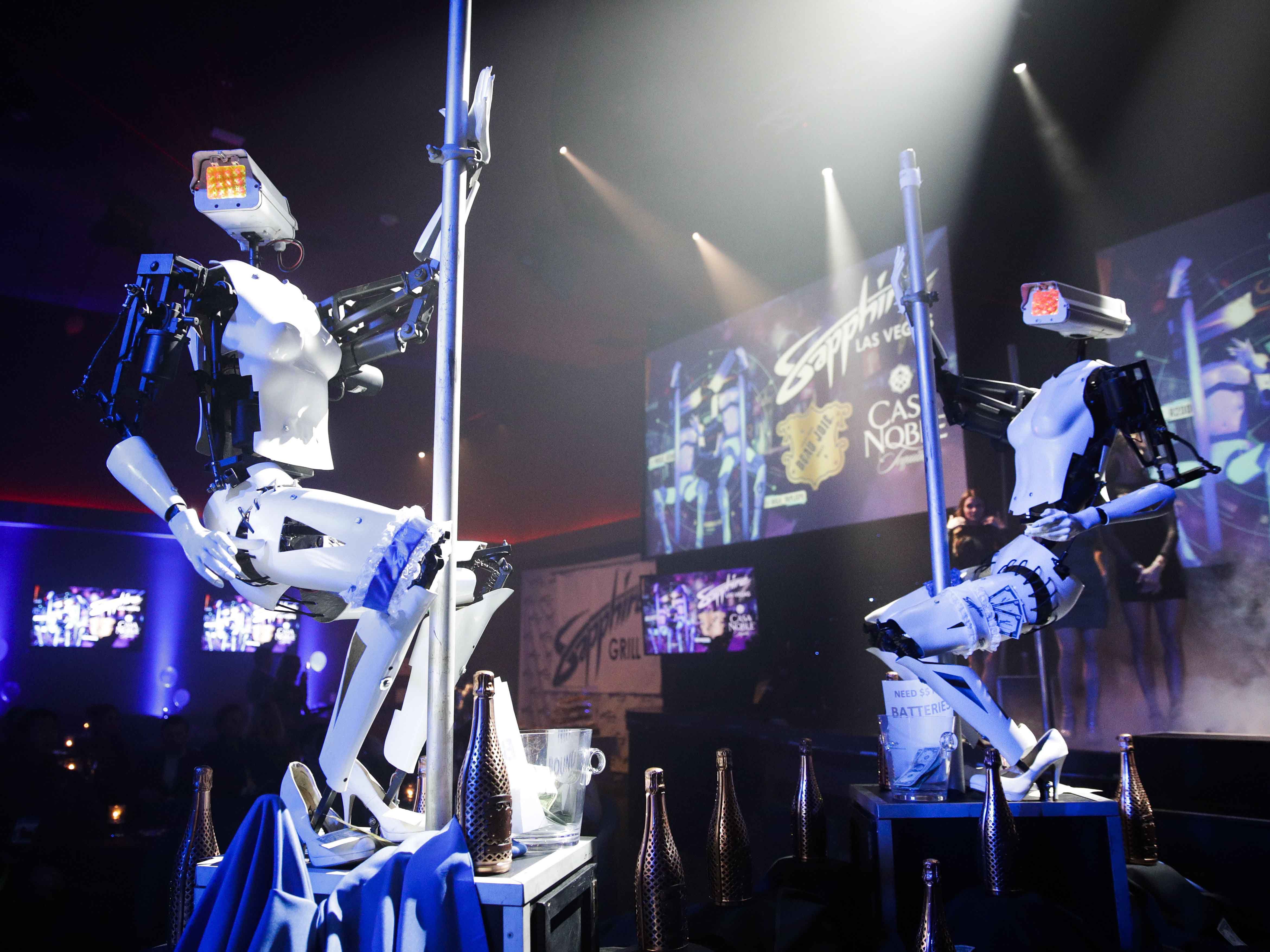 Hace diez años, el artista Giles Walker inventó un par de robots que hacían pole dance en compañía de un tercer robot DJ con un megáfono en la cabeza. Desde su creación, las robots han cobrado vida propia. Sus obras se han vuelto virales en las redes sociales, e incluso, han participado en diversos festivales, conferencias y eventos de tecnología.
