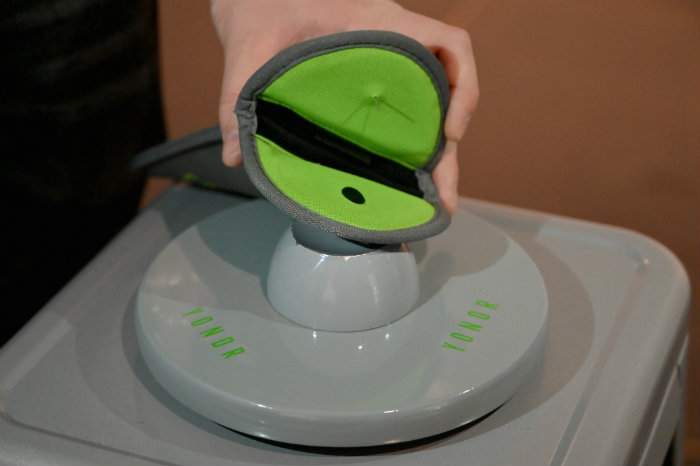 La única manera de abrir la bolsa es ir hasta un aparato que la destranca y que está ubicado en áreas específicas para la utilización de teléfonos.