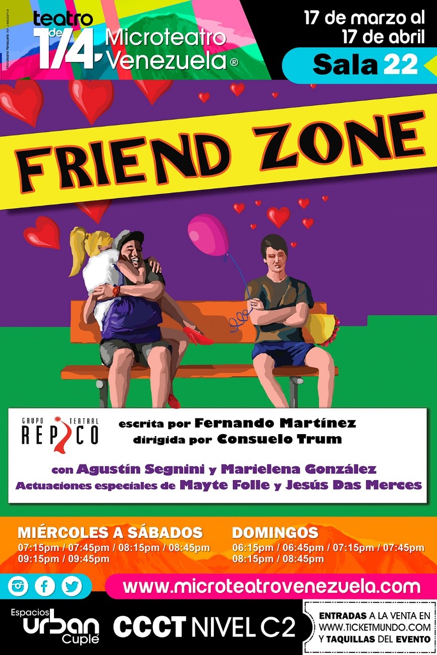 Nadie quiere estar en esa zona desalentadora que impide que esos trucos de «latin lover» atrapen al chamo/chama que tanto deseo despierta. Esa zonita en la que terminan muchos hombres mientras fantasean con la amiga que les cuenta todas sus aventuras amorosas (en las que él no está incluido). Este es el caso de Luis, quien aprovecha una ceremonia de premiación para agradecer a su amiga Rebeca, una persona muy especial en su vida, tan especial que cuando comienza a relatar todos los momentos que han pasado juntos el público percibe que el hombre solo desea una cosa: salir del friendzone en donde lo tiene enjaulado la mujer de su vida.