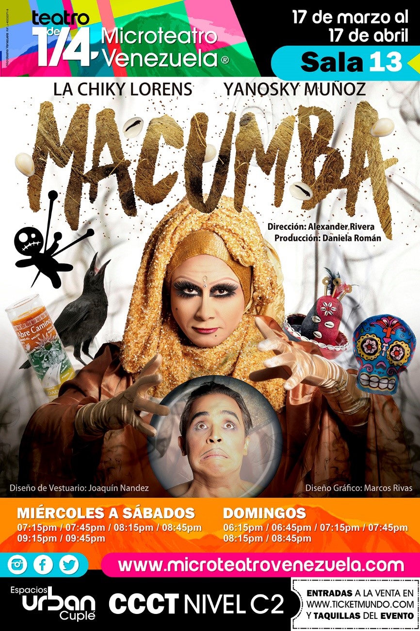 En esta obra el misterio de lo oculto será revelado a través de la clarividencia de Madame Macumba y la ayuda de su fiel asistente Mamba. En medio de una consulta, nada rutinaria, el público se deleitará con un viaje astral en donde la comedia y el teatro de lo absurdo son la excusa perfecta para las risas y el chalequéo. Lo que es seguro es que si Macumba no revela una profecía para cambiar vidas, proferirá otras para que el público se ría a carcajadas.