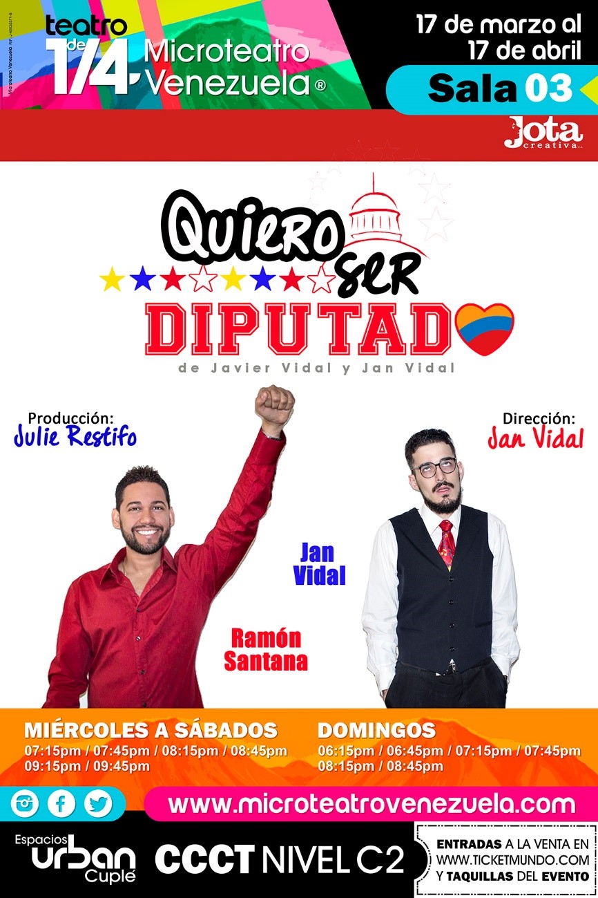 Para marcarnos un poco en el presente, esta pieza nos recuerda el lado tragi/cómico de la política y el país. Esta es la historia de un bolichico que contrata los servicios de un profesor de oratoria con un vocabulario bastante particular, a los Ramos Allup. Este hombre amante de la revolución, en su intento frustrado por entrar preparado a la Asamblea Nacional por el Gran Pilón Patriótico, deberá asistir a unas clases un poco complicadas y fuera de su área de comprensión . La obra es una especie de rutina estilo “Abbot y Costello” (¿Quién está en primera?) con guiños puntuales a las obras “Yo también soy candidato” de Rafael Guinand y “El Burgués” de Moliére.