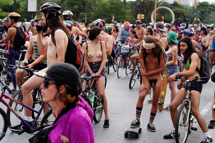 – Eso es un clásico de la ciclonudista. Además del pudor, la idea es despojarse de esos estereotipos estéticos que tenemos. Con nuestra piel. Estrías. Celulitis. Grasas. Parte de demostrar el tema de que nuestro cuerpo es una carrocería cobra forma también de reto para la gente que participa, porque se tiene que despojar de formas estereotípicas nada fáciles.