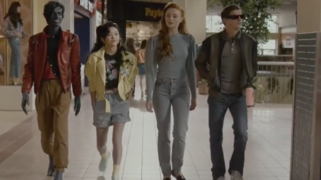 La secuencia muestra a cuatro de los integrantes más jóvenes de los X-Men recorriendo el centro comercial: Jean Grey (Sophie Turner), Cyclops (Tye Sheridan), Jubilee (Lana Condor) y Nightcrawler (Kodi Smit-McPhee). Brake Dance, maquinitas de Arcade y discos icónicos de los 80, es lo que hace de este fragmento de la película tan genial.