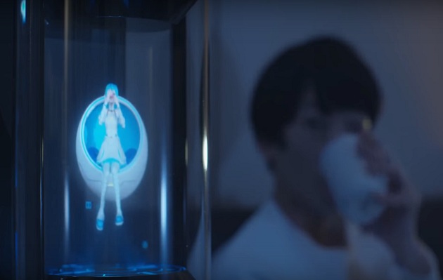 El comercial muestra a una pequeña chica anime en forma de holograma, quien se encarga de despertar a su novio, de mandarle mensajes de texto en el transcurso del día, de prender las luces cuando llega a casa, y de ver televisión junto a él en las noches. Probablemente, es el robot “sexual” más depresivo que has visto. ¿Quién se puede sentir excitado con eso? En fin…
