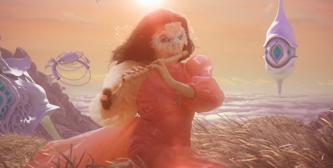 El vídeo comienza con Björk tocando la flauta en un mundo oscuro y mágico en el que la cantante dialoga con su propio espíritu. Es lo menos que podíamos esperar de ella, ¿cierto?