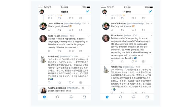 Así se verán los tuits extendidos (izquierda 140, derecha 280):