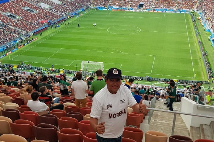 Como miles de mexicanos, Juan Antonio Villarroel fue al Mundial en Rusia para asistir al partido México-Alemania. Se tomó la foto del recuerdo durante el histórico partido en que el país latinoamericano venció al campeón del mundo, y la publicó en internet.