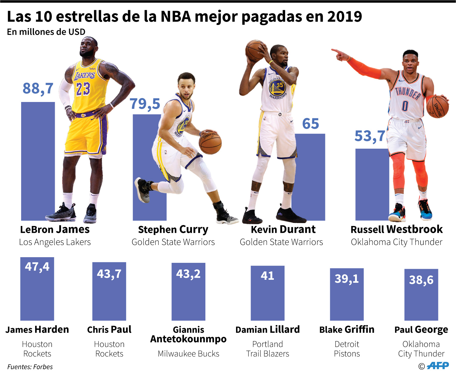 Sigue practicando porque quizás podrías ser como ellos: los millonarios de la NBA, los que ganan fortunas en la liga de basketball más importante del mundo están aquí. Y LeBron James es el rey en este selecto club con 88,7 millones de dólares de ingresos estimados para este año