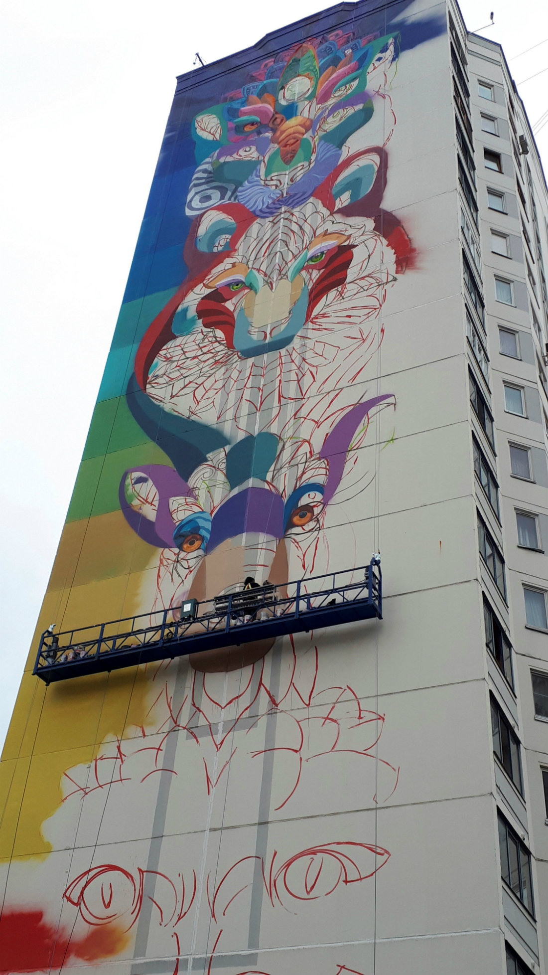 El proyecto es literalmente monumental y según sus organizadores, único en su escala, se trata de gigantescos murales en fachadas de catorce metros de ancho por 56 de altura, la misma de un edificio de 16 plantas.