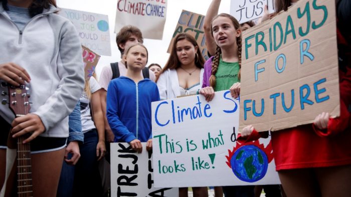 La activista medioambiental sueca, elegida este 2019 como «la persona del año» por la revista Time, se ha convertido en un auténtico icono mediático y es la voz más visible de la juventud por el clima. Un movimiento que la joven inició faltando a la escuela y acampando, en agosto de 2018, frente al Parlamento sueco con un cartel que rezaba «Huelga escolar por el clima».