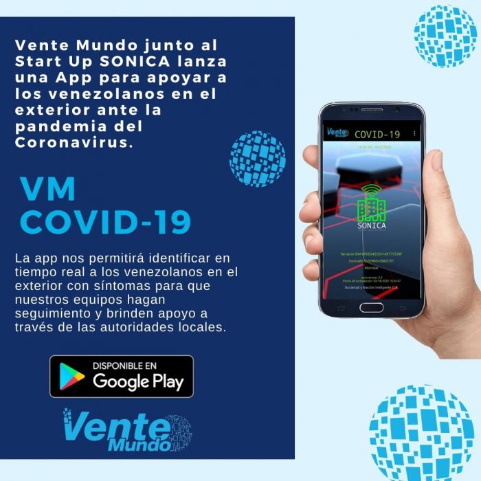 La aplicación fue desarrollada por la start-up venezolana de la Sociedad y Nación Inteligente (Sónica), junto a Vente Mundo (perteneciente al partido Vente Venezuela) para ayudar a los venezolanos que se encuentran en el extranjero ante la pandemia del coronavirus.