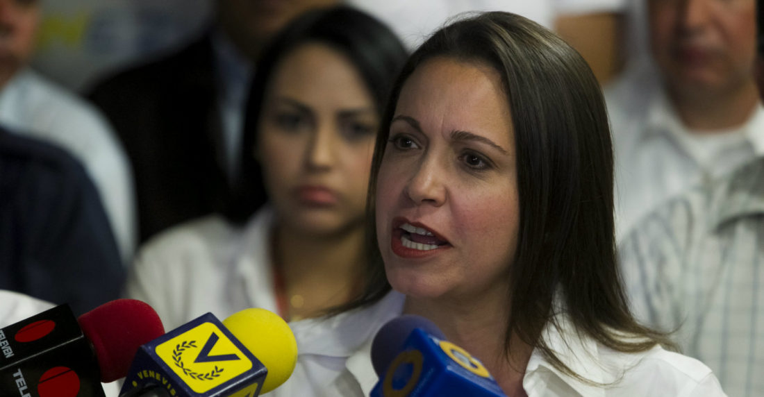 [Machado] ha sido víctima durante los últimos años de una incesante persecución política por parte del régimen chavista que, no conforme con haberla destituido inconstitucionalmente de su cargo como diputada, le ha prohibido la salida del país y amenaza con encarcelarla en cualquier momento.