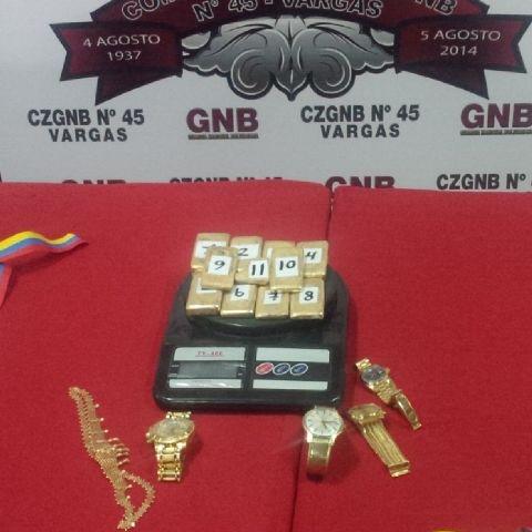 En un operativo efectuado este domingo en el Aeropuerto Internacional de Maiquetía, funcionarios la Guardia Nacional incautaron 11 lingotes de oro, con un peso de 2 kilos 632 gramos y un valor de $109.632. También se les decomisaron varias prendas de oro.