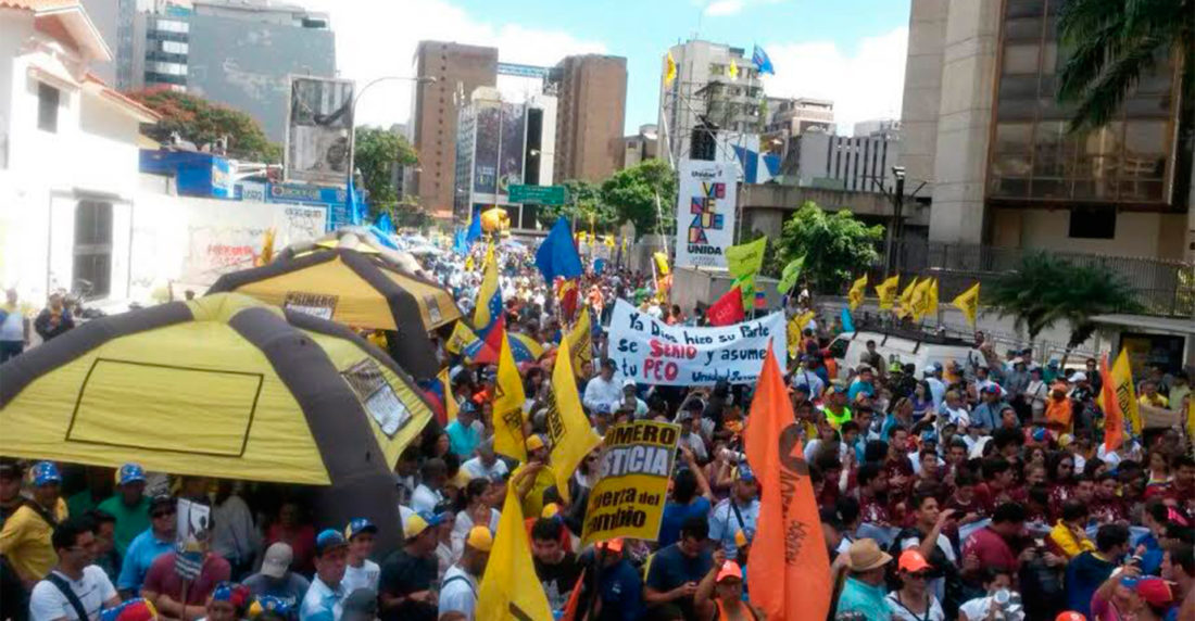 «Nos vemos en la calle», invitó más temprano el secretario de la Mesa de la Unidad Democrática (MUD), Jesús «Chuo» Torrealba. La movilización de este sábado fue denominada por la oposición como «Marcha contra el hambre y por el cambio».