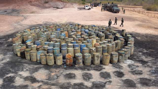 “Tras labores de inteligencia y gracias al trabajo comunal de las comunidades de la zona, con miembros de la FANB se efectuó con éxito dicha operación, logrando así desmantelar este nuevo escondite donde los contrabandistas almacenaban 378 recipientes de plástico (pipas), 125 llenas y 253 vacías con capacidad para 220 litros cada una”.