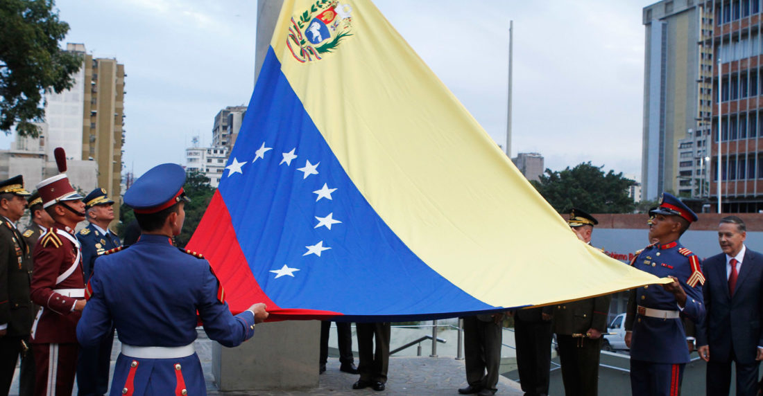 El acto de izada del tricolor venezolano se llevó a cabo en el Panteón Nacional, donde descansa el libertador Simón Bolívar, ubicado en Caracas.