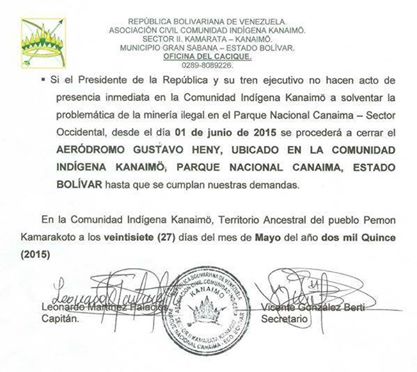 Desde las 6 de la mañana de este lunes, la comunidad indígena de Kanaimö mantiene cerrado el aeródromo Gustavo Heny, en el Parque Nacional Canaima, estado Bolívar.