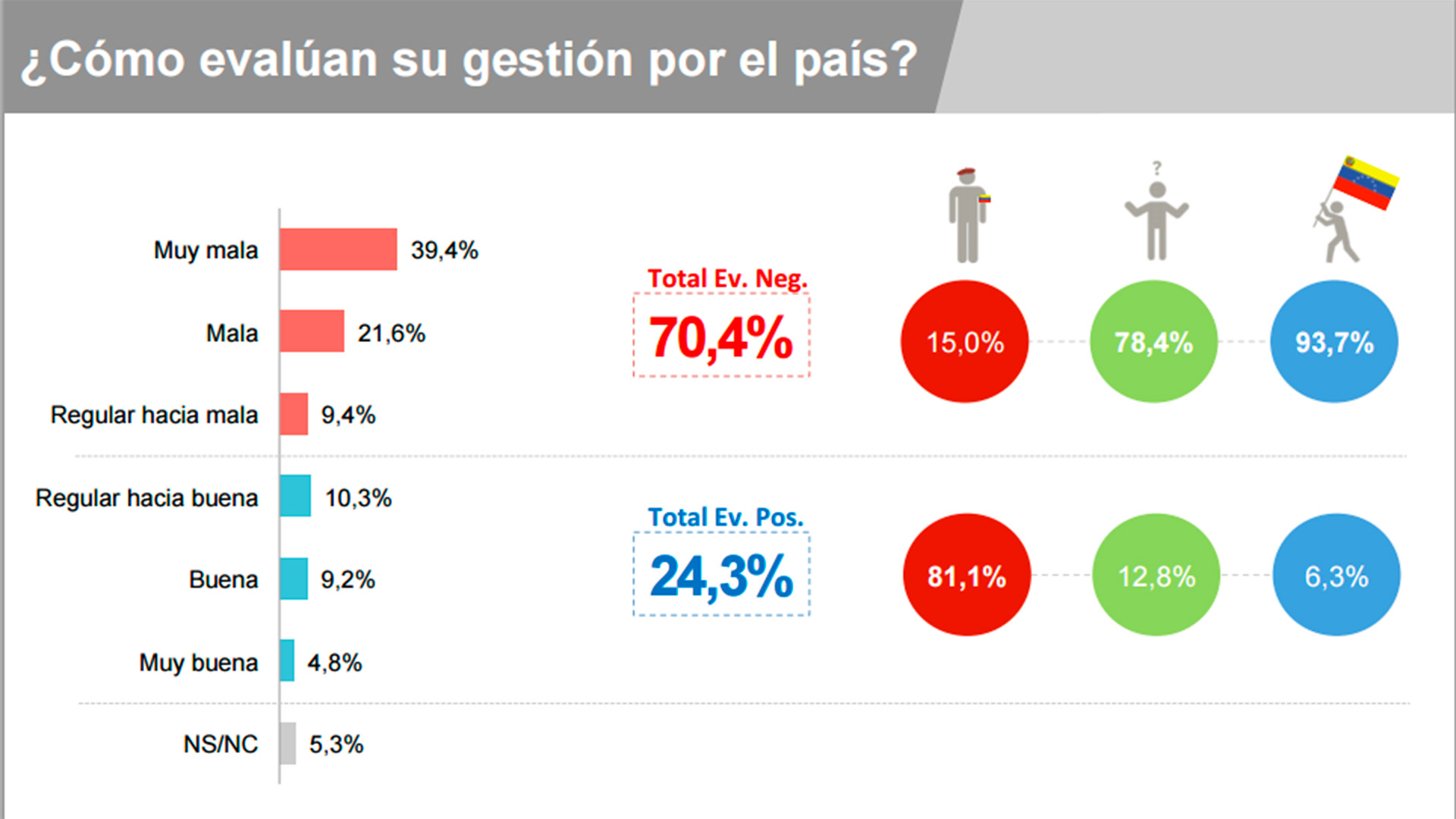 Con respecto a la evaluación de la actual gestión, el 39,4% la percibe «muy mala»; el 21,6 como «mala» y el 9,4% de «regular hacia mala».