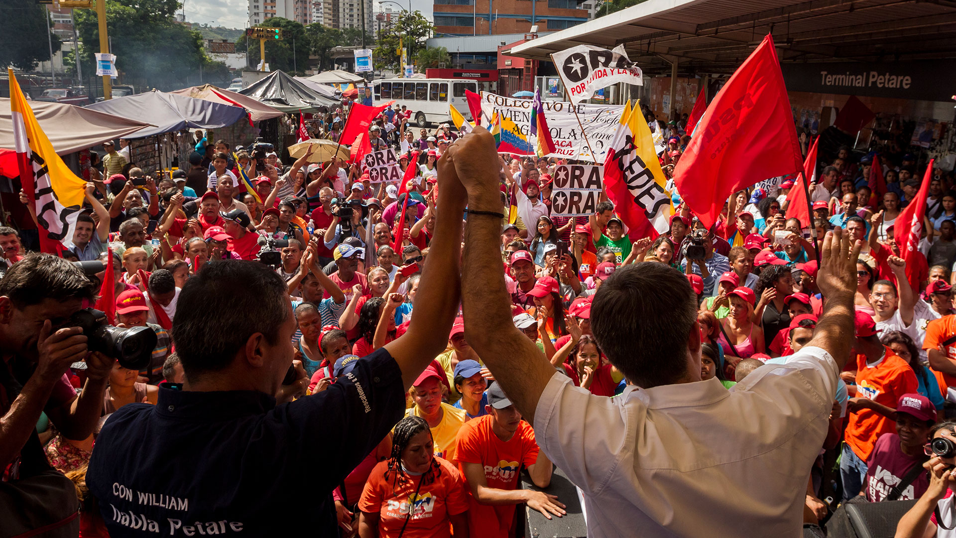 Desde el chavismo, los candidatos por el estado Miranda se vieron impulsados por el propio jefe de Estado, Nicolás Maduro, que realizó un acto de inspección de obras en compañía de los aspirantes del Partido Socialista Unido de Venezuela (PSUV) Haiman El Troudi, Elías Jaua y Blanca Eekhout, entre otros.