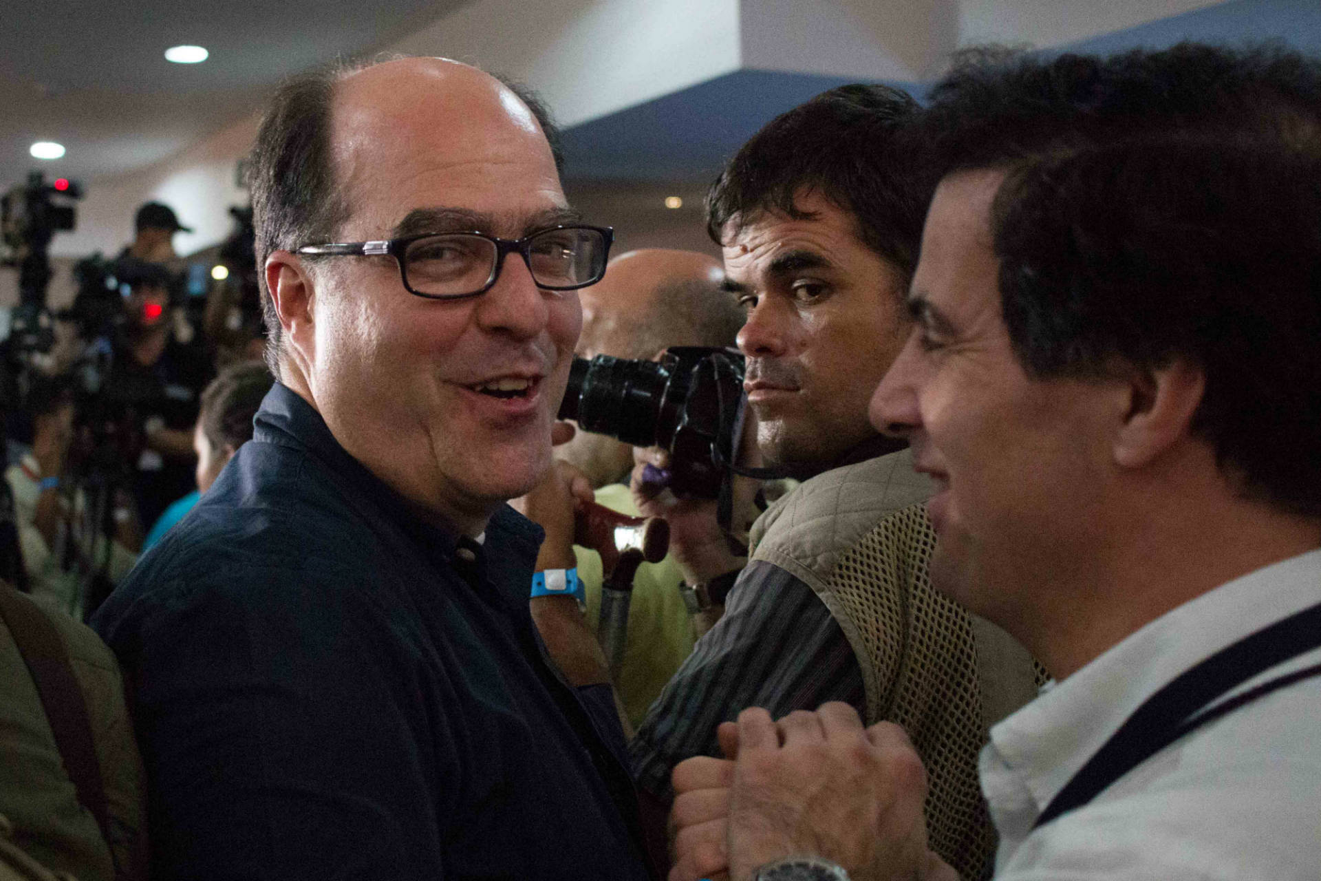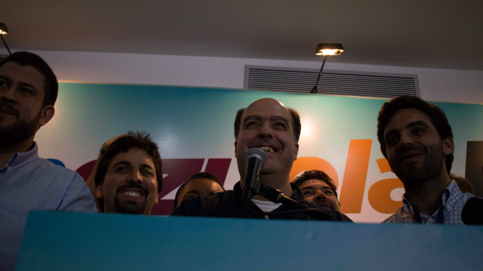 A las 9 de la noche, integrantes de la Mesa de la Unidad Democrática (MUD) declararon ante los medios de comunicación que habían logrado la mayoría en las elecciones parlamentarias.