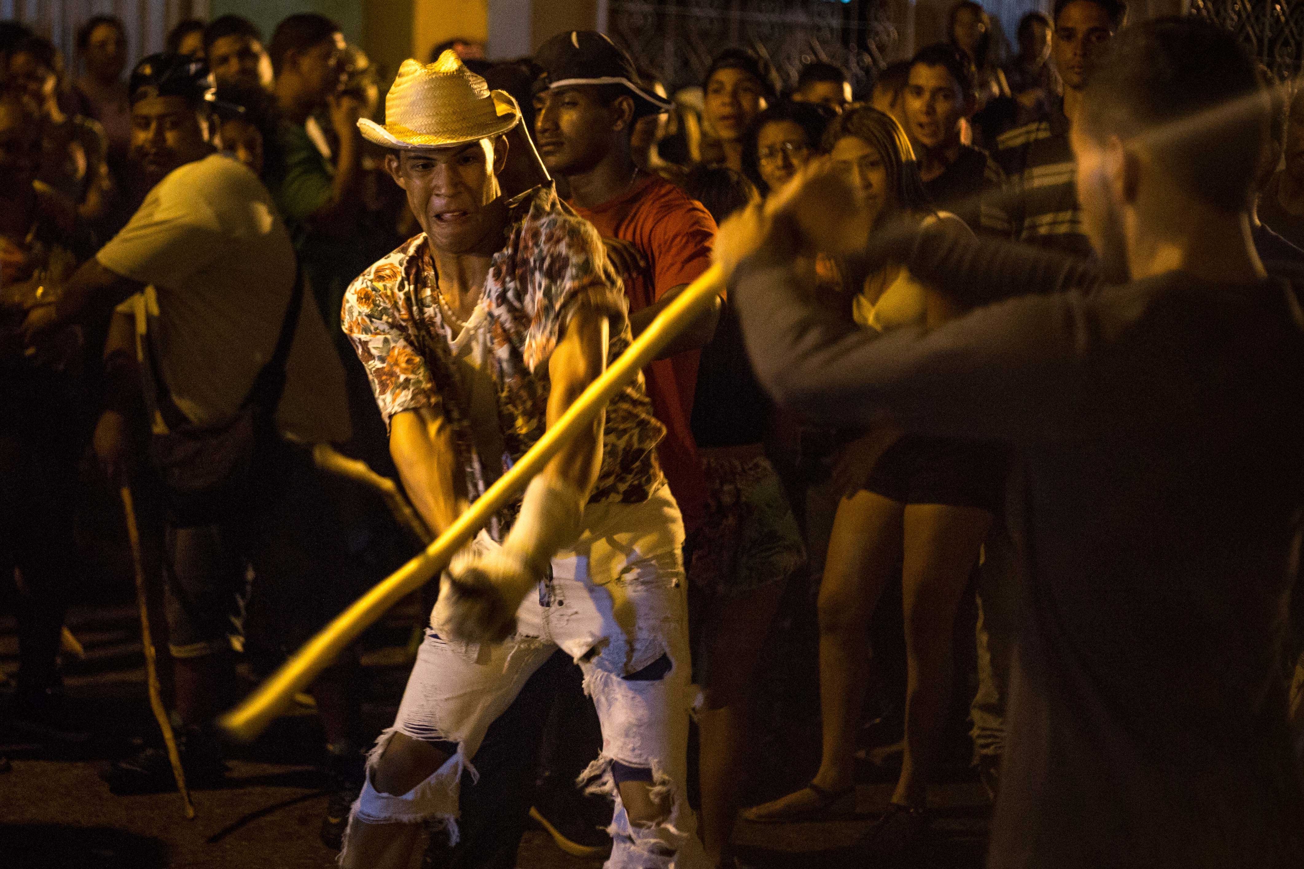 Rainer es reconocido como uno de los mejores peleadores, pero eso quiere decir que todos los demás lo quieren retar. Anteriormente la confrontación se hacía en papiamento: “Hombre macho yo, vita hombro, abre campus”, y comenzaban los palazos. Israel Croker era su ídolo cuando estaba comenzando a ser hamaquero, junto a Wilmer, y otro luchador que llamaban el Catire. Ellos siempre salían retratados en la prensa, y por eso eran los más famosos, comenta. Pero Rainer también cuenta que se transforma empieza el baile. Sientes que te espelucas al escuchar los tambores, dice. Te posee una euforia de la coronilla a los pies. Es una energía inexplicable, casi mágica. Asegura que una vez creyó que peleaba con un muerto.