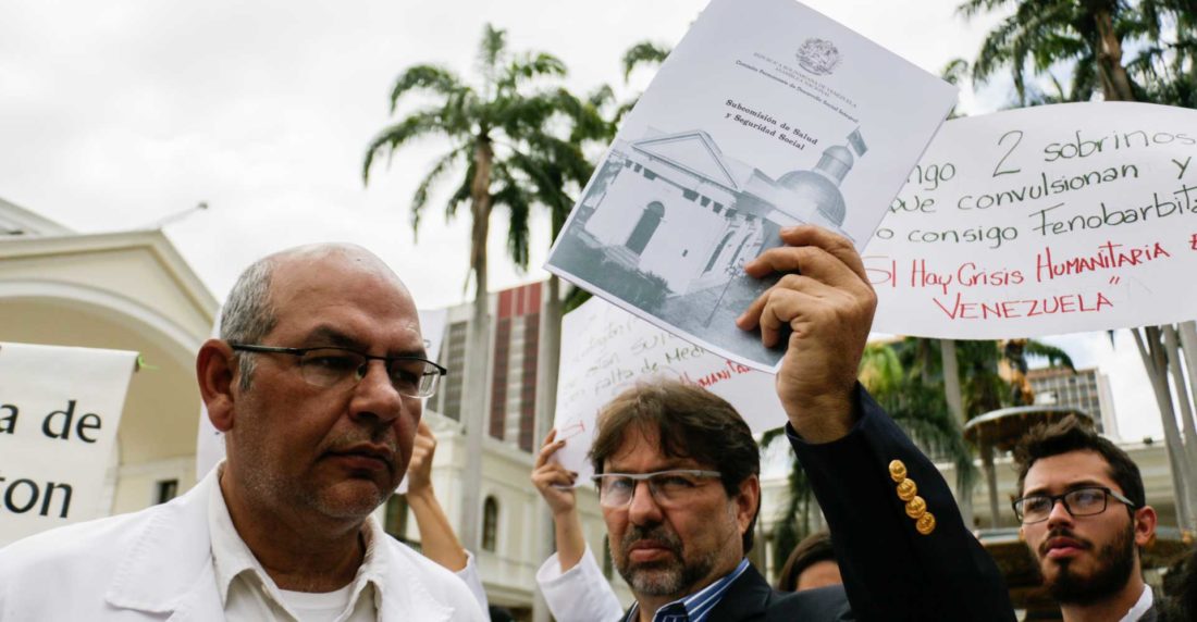 El profesor del Instituto de Medicina Tropical de la Universidad Central de Venezuela y miembro de la Organización Médicos por la Salud, Julio Castro, se encontraba hoy en la Asamblea Nacional junto con grupos de pacientes organizados, gremios de médicos, áreas de la salud general, enfermeras, técnicos cardio pulmonares e inclusive obreros de hospitales para alzar la voz por sus pacientes y la «terrible coyuntura que se vive en el país, en especial con la situación de los medicamentos».