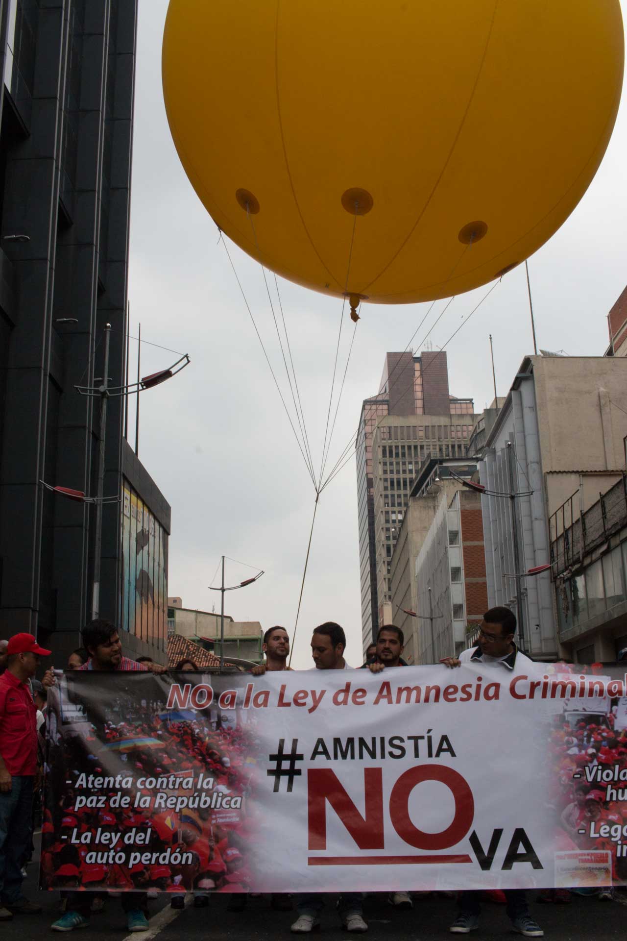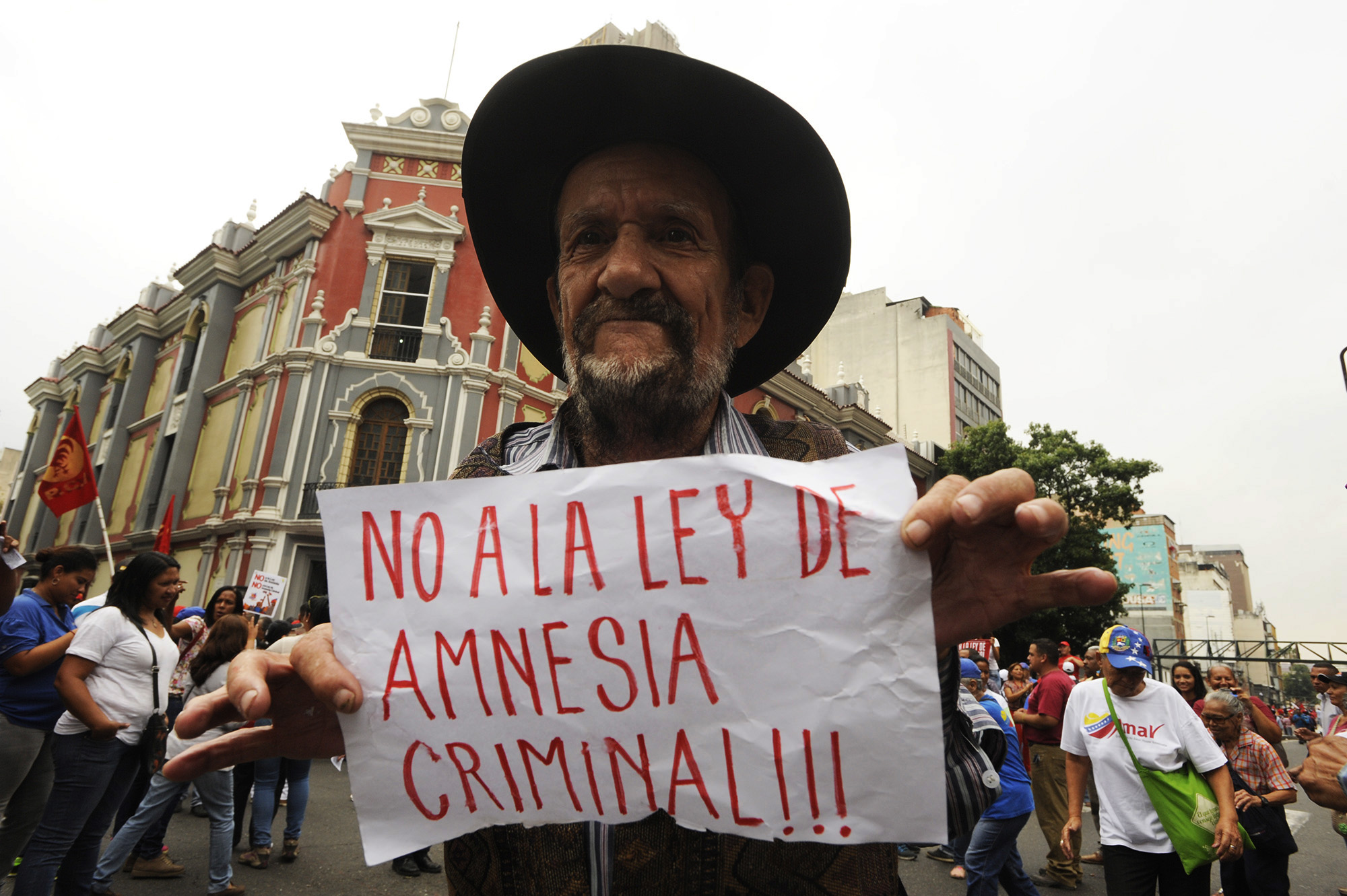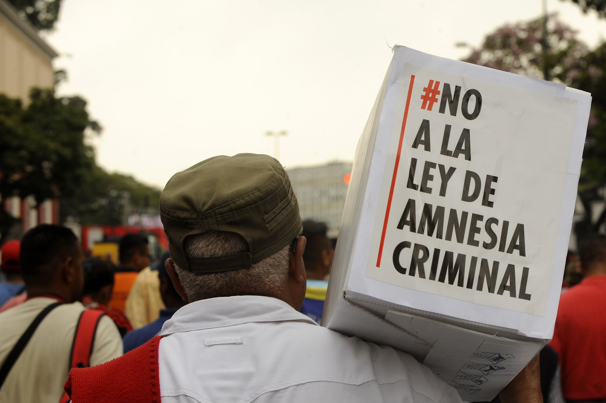 Miles de venezolanos marcharon contra la Ley de Amnistía y Reconciliación Nacional, que fue aprobada por el Parlamento el martes 29 de marzo. En la protesta abundaron los carteles con las palabras "Amnesia Criminal", un término popularizado por el jefe de la bancada oficialista, Héctor Rodríguez.