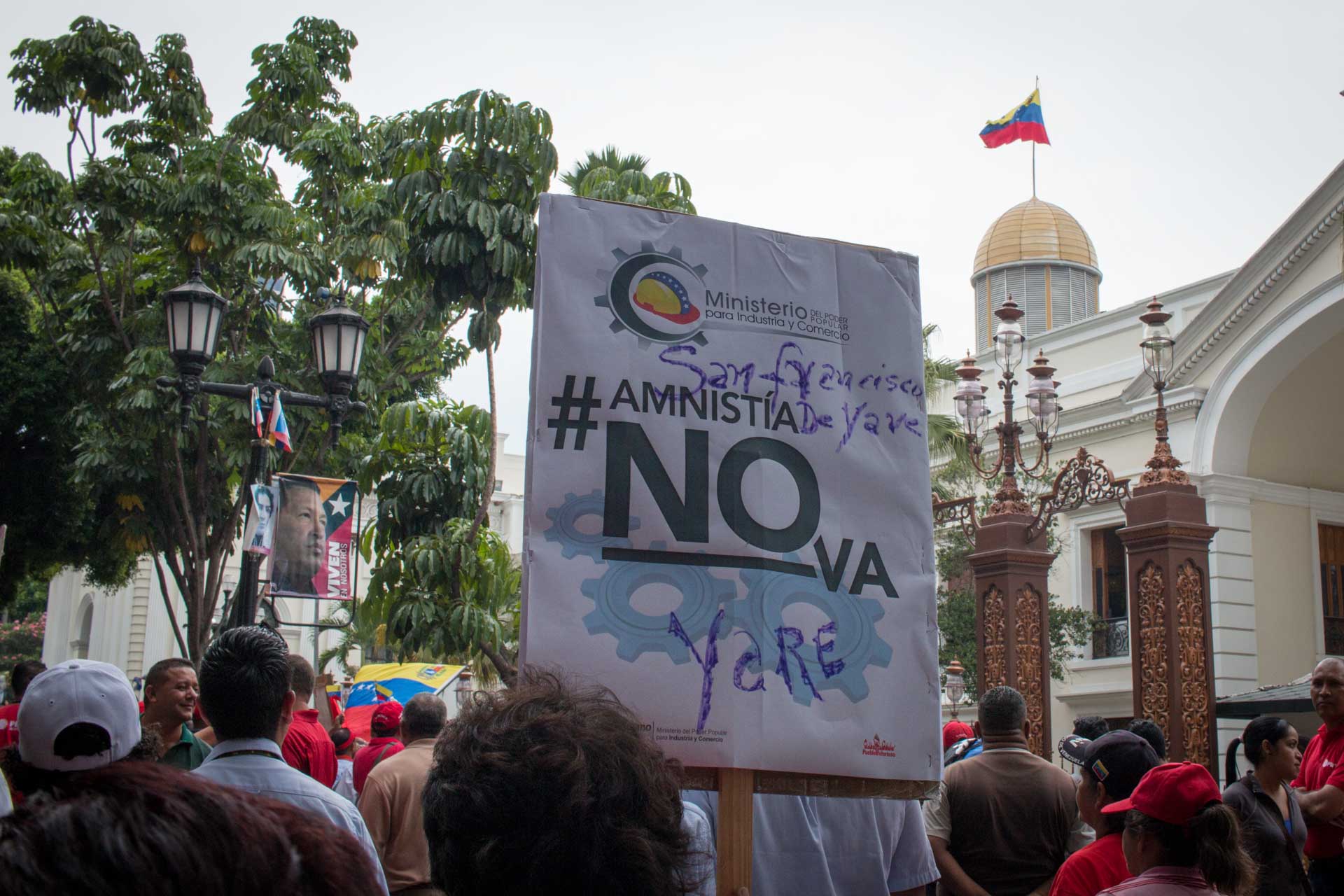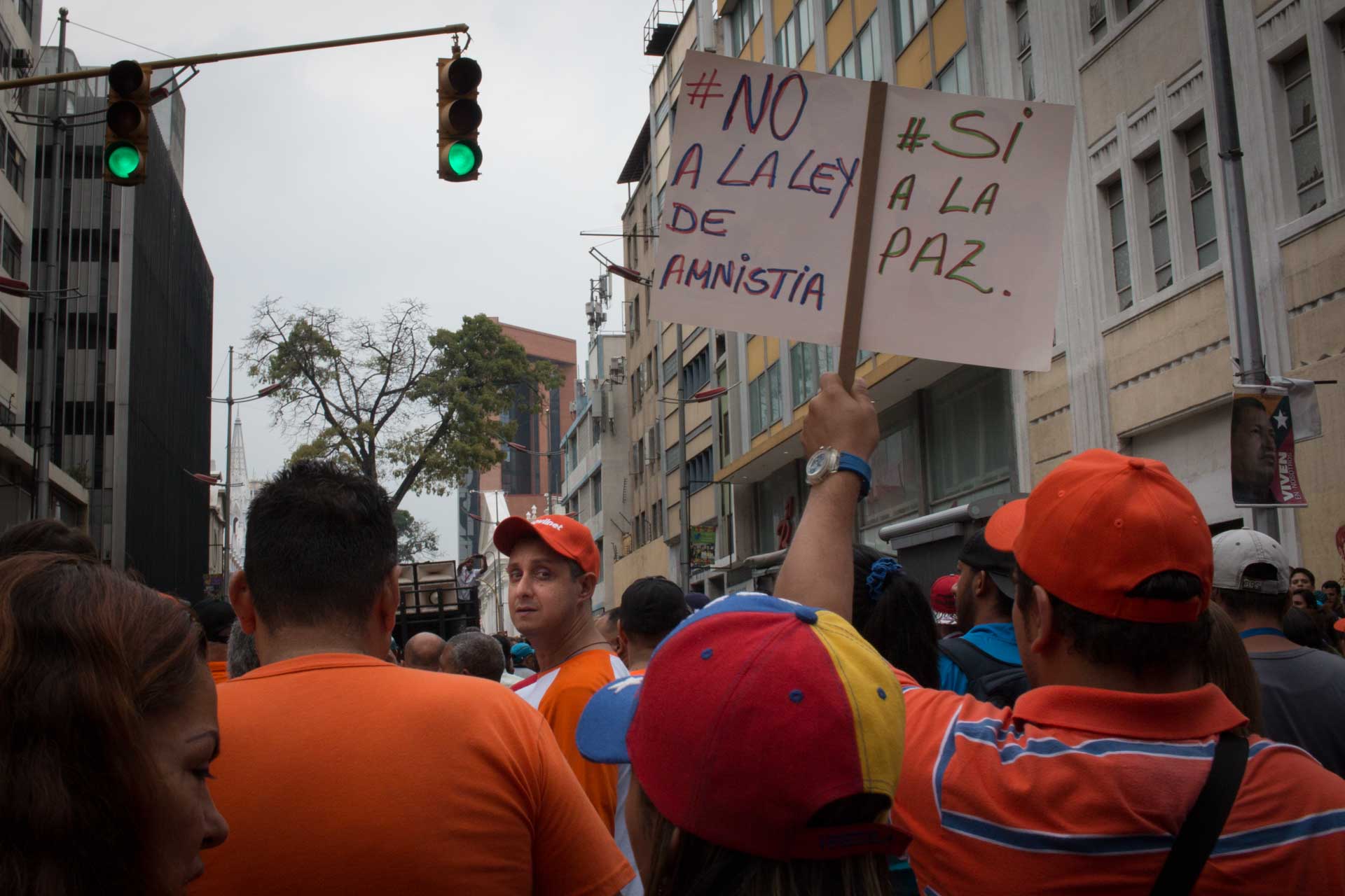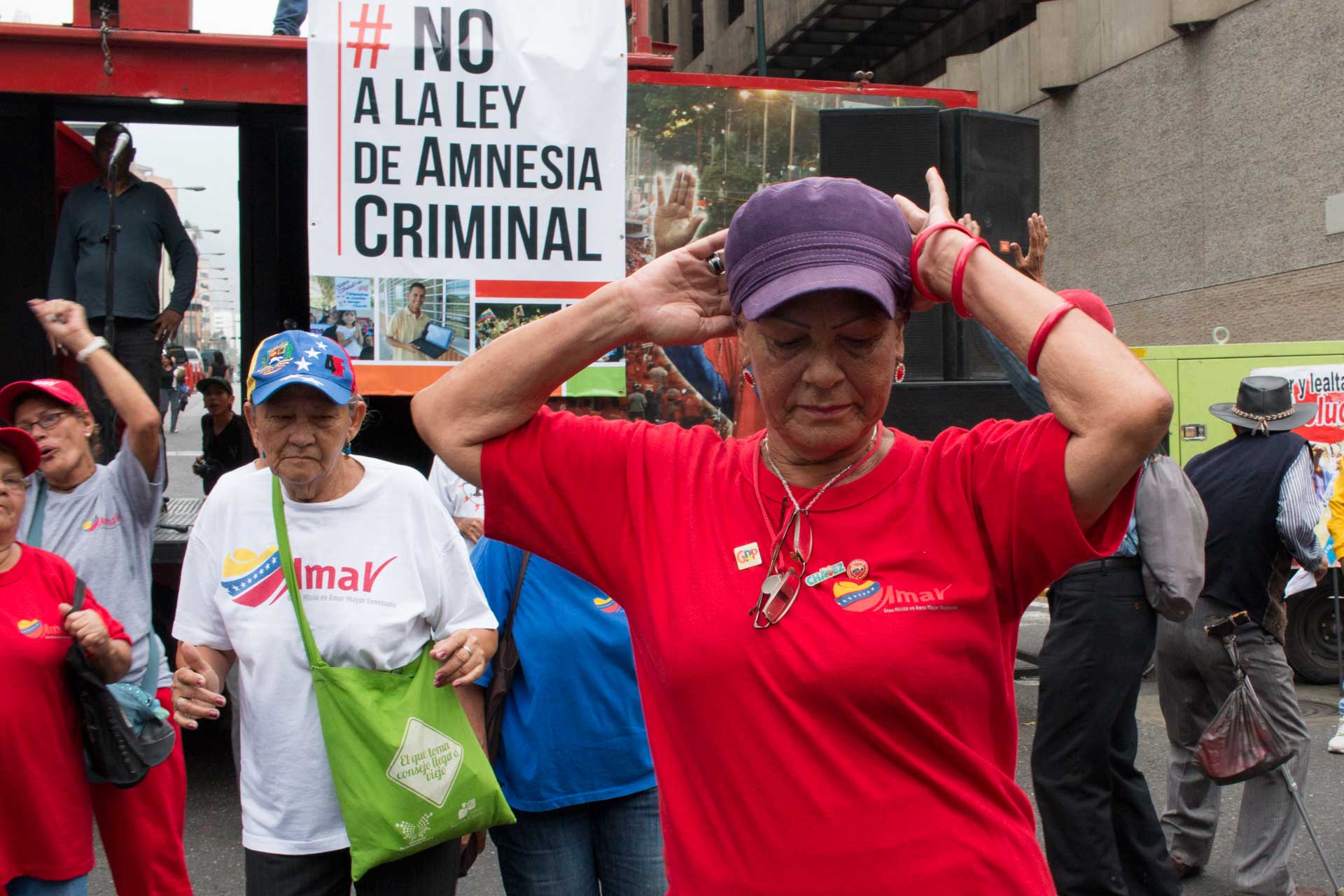 Miles de venezolanos marcharon contra la Ley de Amnistía y Reconciliación Nacional, que fue aprobada por el Parlamento el martes 29 de marzo. En la protesta abundaron los carteles con las palabras "Amnesia Criminal", un término popularizado por el jefe de la bancada oficialista, Héctor Rodríguez.