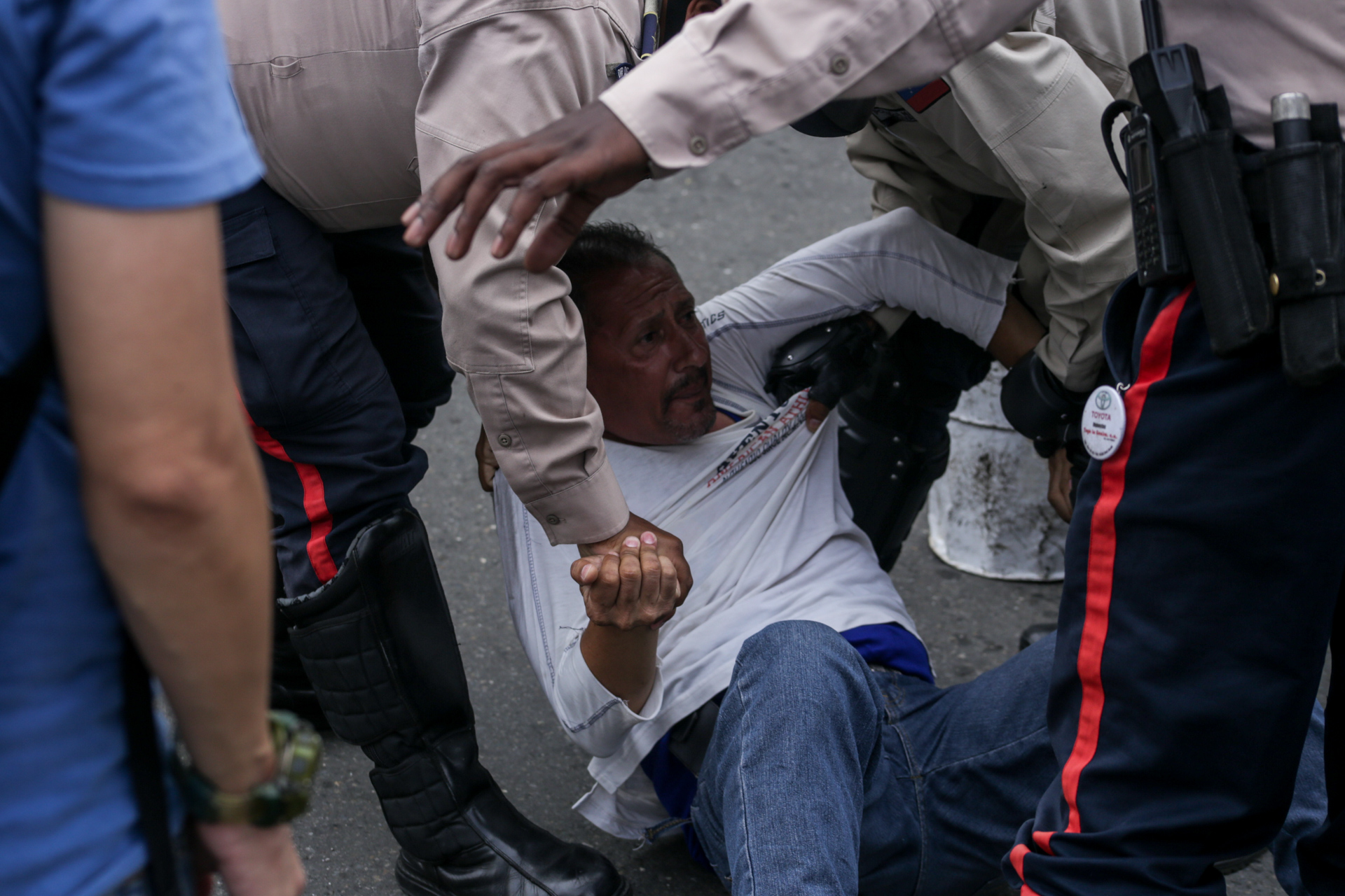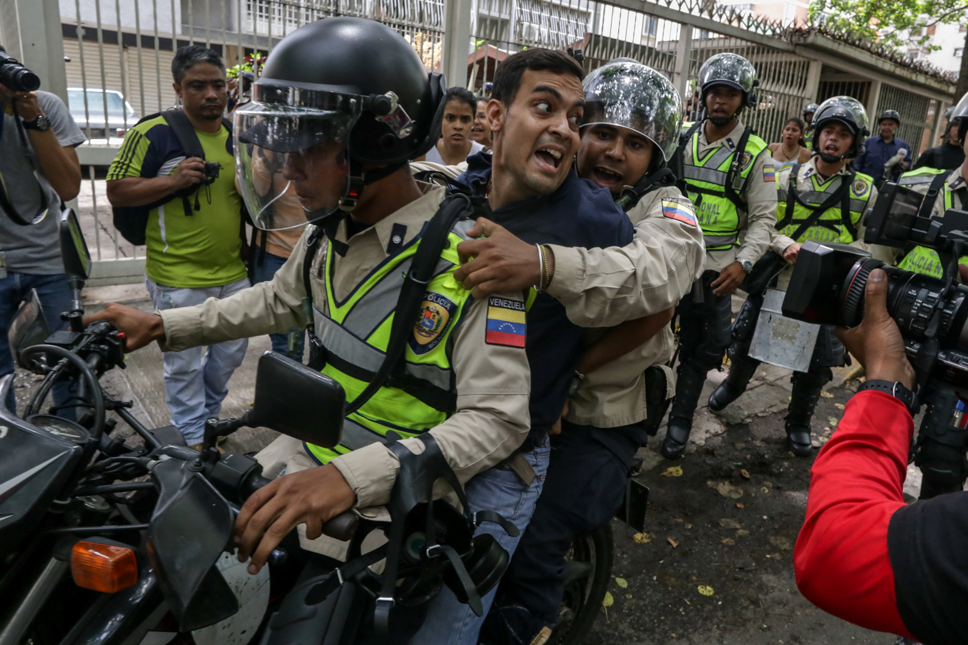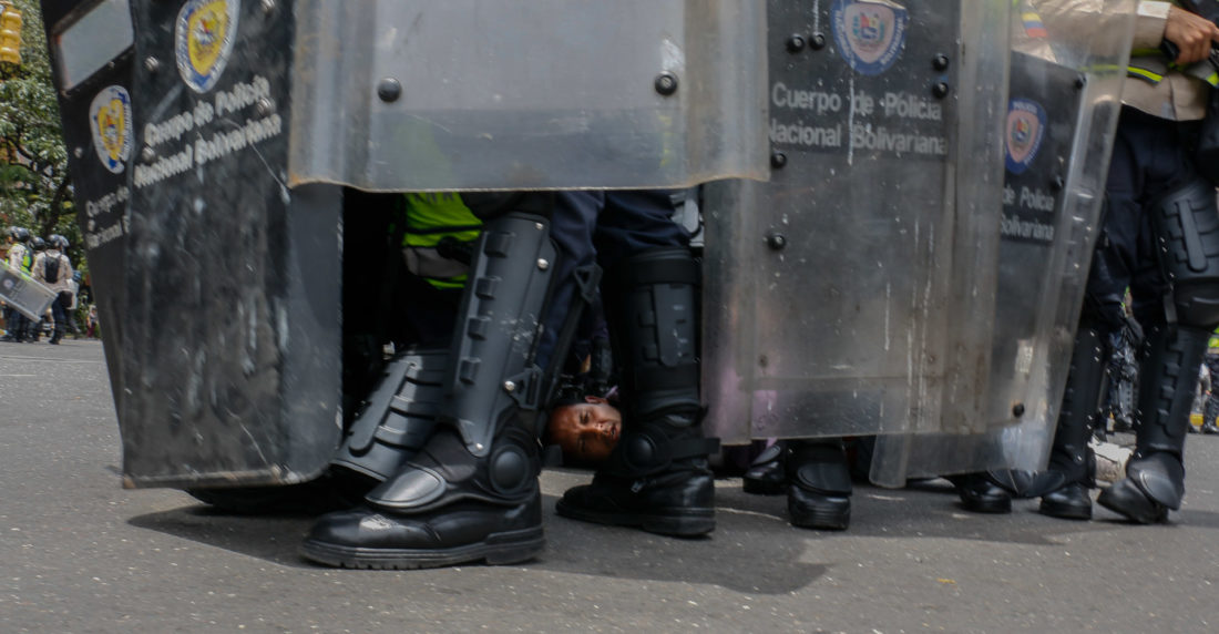 Unos efectivos de la Policía Nacional Bolivariana (PNB) se introdujeron en un edificio para arrestar a este joven