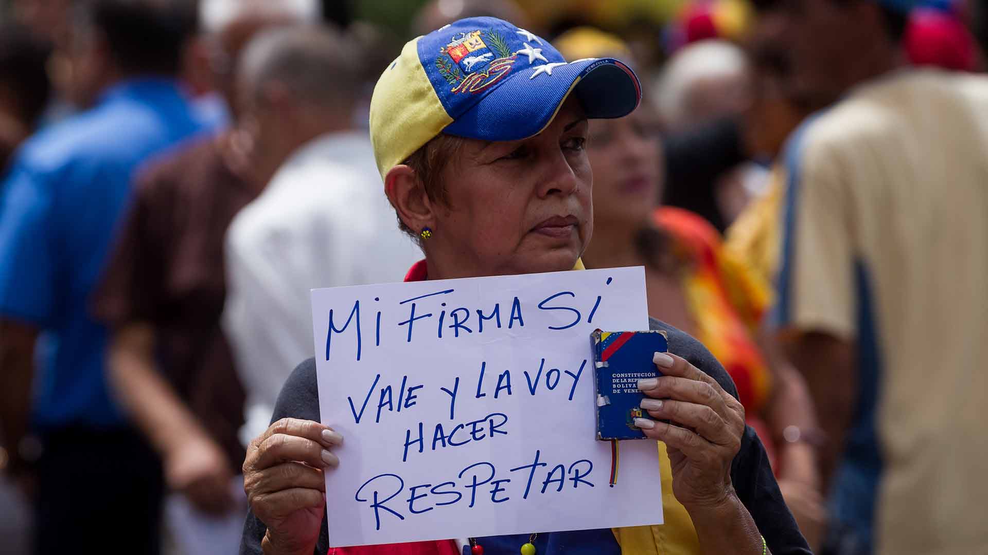 Bajo la consigna #MiFirmaSíVale ciudadanos y líderes de la Unidad Democrática acudieron este lunes a la Plaza Brión de Chacaíto, en Caracas, para exigirle al Consejo Nacional Electoral (CNE) que fije los puntos de validación del 1% de las firmas para el referendo revocatorio.