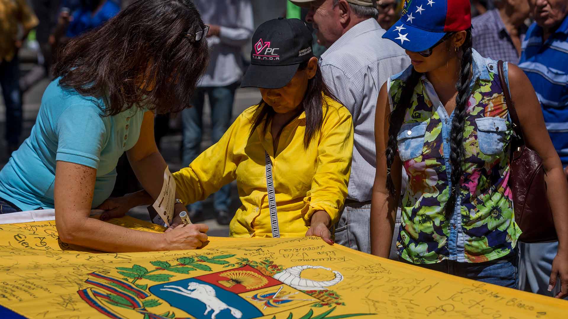 Muchos plasmaron nuevamente sus firmas sobre inmensos pergaminos y banderas del tricolor nacional, donde además de sus rúbricas expresaron el por qué debe desarrollarse este mecanismo constitucional antes de que culmine 2016.