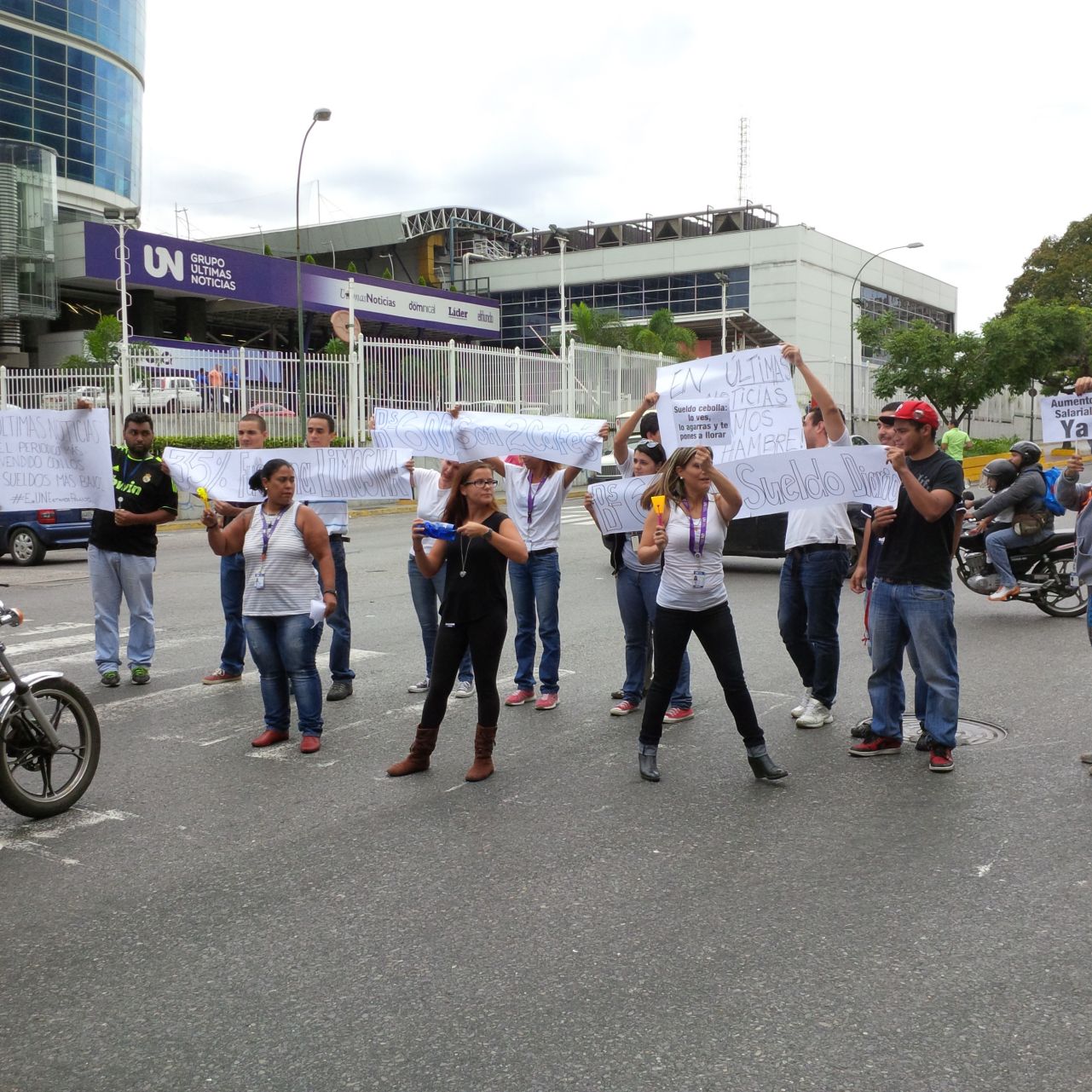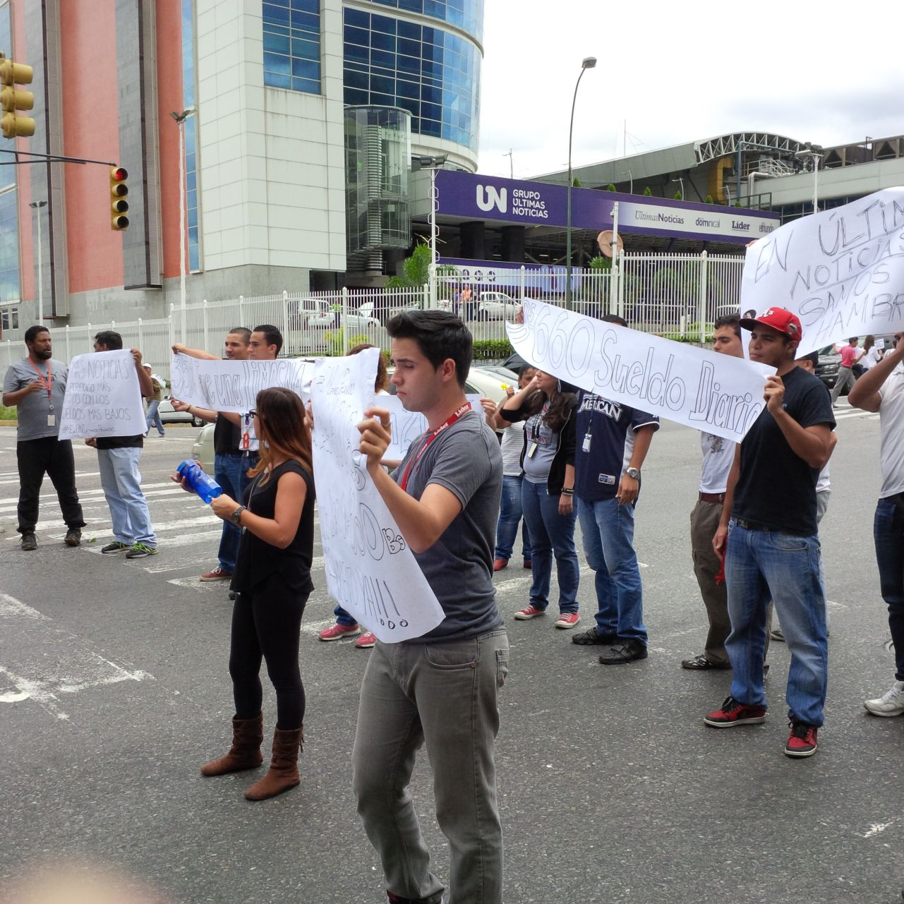 Delegados sindicales, junto con reporteros, fotógrafos y diseñadores, salieron a los alrededores del edificio sede, en La Urbina, este de Caracas, a repartir volantes en los semáforos y desplegar pancartas denunciando el retraso en la discusión del contrato colectivo. Pero una vez terminada la actividad, cuando iban a regresar a sus puestos de trabajo, consiguieron las entradas bloqueadas, por órdenes del presidente de la empresa, Héctor Dávila.