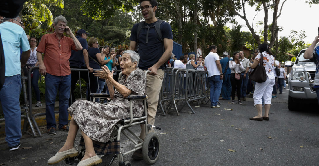 Josefa Montes, de 76 años, tardó cinco horas y media para poder entrar al centro. Validó su firma porque quiere un cambio para Venezuela. Fue acompañada de Rebeca de Anzola, de 65 años, quien declaró que firmó porque quiere salir de esta «terrible crisis».