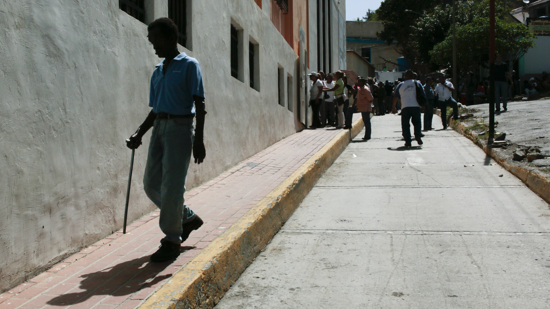 Milena Vargas se apoyó de un conocido para subir con su bastón la calle estrecha que da hacia la sede del Consejo Nacional Electoral en el Litoral Central, al norte de Caracas. Dice que tenía “años” sin haber tomado un autobús para llegar al sitio.